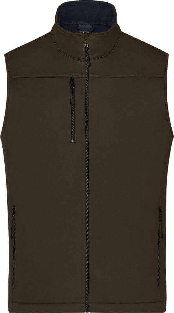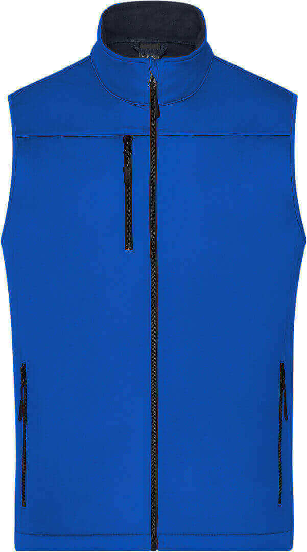 Pánska, 3-vrstvová softshellová vesta, funkčná tkanina s membránou TPU, odolná proti vetru a vode (5000 mm), priedušná, stojatý golier, zipsy YKK, 2-smerný zips po celej dĺžke s chráničom brady, vrecko na hrudi so zipsom, 2 bočná vrecká, švy nezapečatené, vpredu sieťovaná podšívka, vpredu prístup k dekorácií, vnútorná strana z mäkkého mikrofleecu, priepustná pre vodné pary. Vyrobená zo 100% polyesteru.