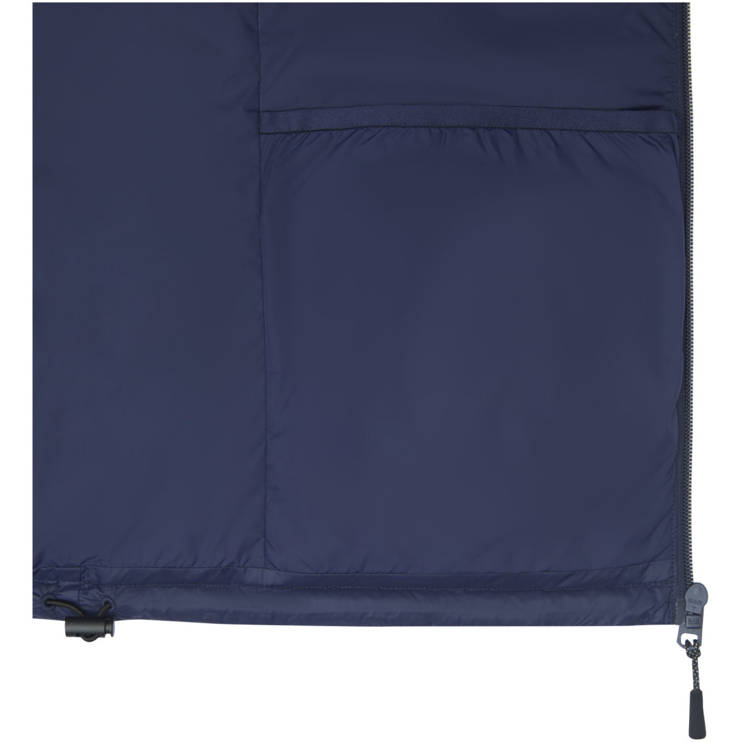 Pánska zateplená vesta Epidote GRS z recyklovaného materiálu - udržateľná a štýlová voľba vrchného oblečenia pre dobrodruhov, ktorí dbajú na životné prostredie. Tento bodywarmer, vyrobený s precíznosťou a starostlivosťou, je plne certifikovaný GRS, čo z neho robí udržateľnejší doplnok vášho šatníka. Prešívaný vzor v tvare včelieho plástu, navrhnutý pre pohodlie a teplo, ukazuje moderný dizajn a zlepšuje izoláciu, zatiaľ čo tkanina z recyklovaného nylonu dull cire 380T s certifikáciou GRS zaisťuje trvanlivosť a odolnosť voči poveternostným vplyvom. Dokonca aj lemy a doplnky, vrátane zipsov, sú premyslene vyrobené z recyklovaných materiálov, čo zaisťuje, že každý aspekt tejto vesty prispieva k ekologickejšej planéte. Bodywarmer Epidote je vybavený praktickými prvkami, má predné vrecká na zips a vnútorné ľavé spodné vrecko pre bezpečné uloženie. Vnútorný poklop proti búrke s ochranou brady vás ochráni pred nepriaznivými vplyvmi a elastická sťahovacia šnúrka s nastaviteľnou šnúrkou v dolnom leme umožňuje prispôsobenie. Elastické viazanie na kapucni zaisťuje dodatočnú ochranu pred chladným vetrom. Recyklované perie s certifikáciou RDS poskytuje teplo bez toho, aby boli ohrozené etické normy. Vďaka certifikácii GRS zaručujúcej 100% certifikovaný dodávateľský reťazec predstavuje tento odev skutočne ekologicky uvedomelú voľbu. Nylonová tkanina 380T, vodoodpudivá a impregnovaná. 100% GRS certifikovaný recyklovaný nylon, Recyklované perie, 115 g/m2.