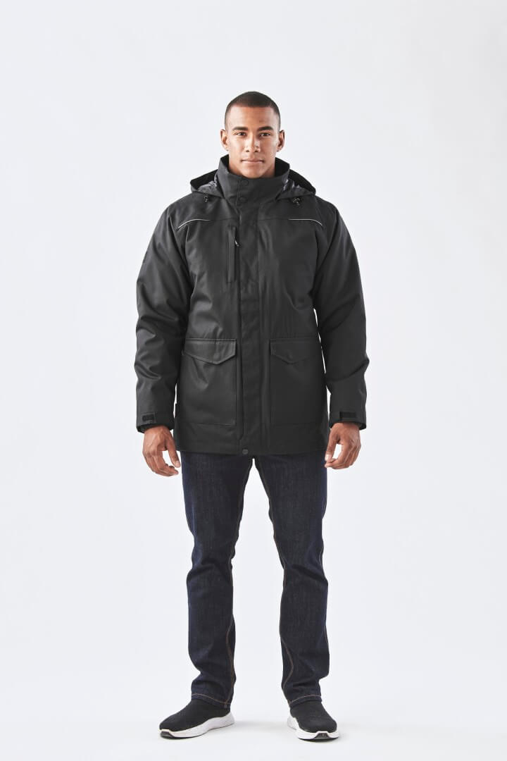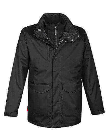 100% polyester, 160 g/m2 so 100% polyesterovou vložkou z polárneho flísu so zipsom a podšívkou z materiálu Taffeta, 278 g/m2 | Vodeodolnosť 600 mm, priedušnosť 1 000 g/m² | Extrémne chladné počasie: 0 °C (32 °F) až -20 °C (-4 °F) | Vonkajší plášť D/W/R | Odopínacia nežmolkujúca flísová podšívka | Skladacia kapucňa | Po celej dĺžke vonkajšia chlopňa proti vetru so zapínaním na patentky | Reflexné lemovanie | Vrecko na zips na hrudi | Priestranné vrecká | Vnútorné bezpečnostné vrecko na zips
