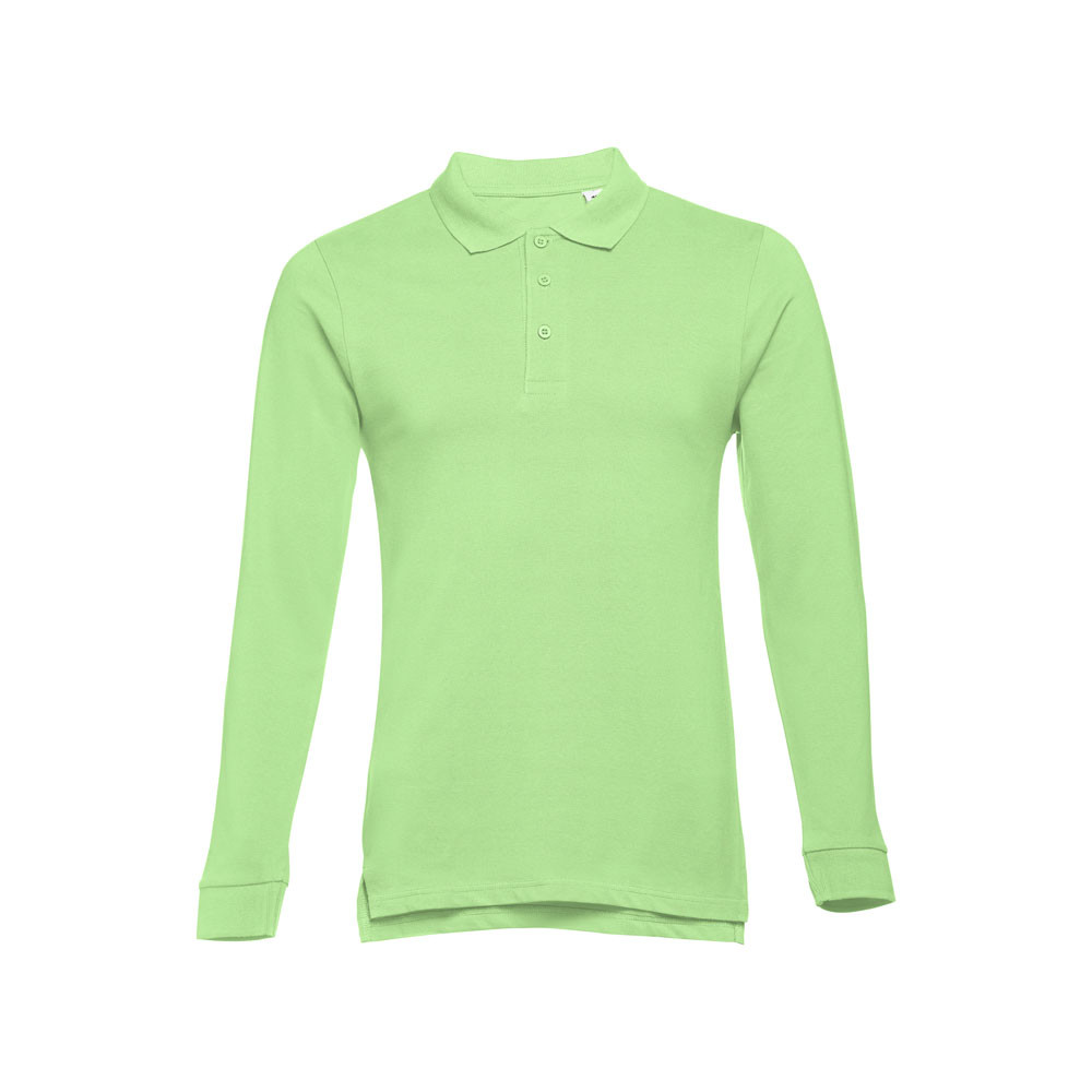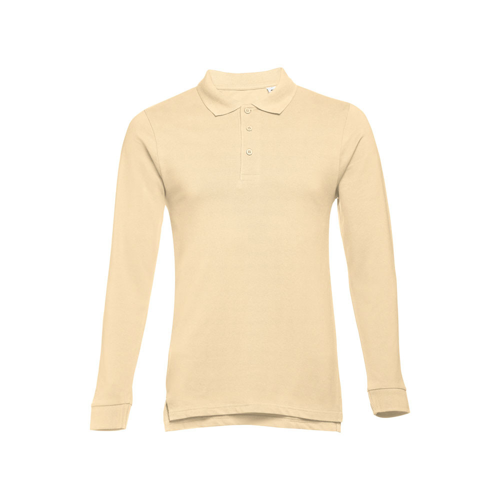 Pánska polokošeľa s dlhým rukávom zo 100% bavlneného piké (210 g/m²). Farba 83: 85% bavlna / 15% viskóza. Rebrovaný golier a rukávy, rebrovaná výstuž na golieri a vystužená léga s 3 farebnými gombíkmi. Spodná časť s bočnými rozparkami. Náhradný gombík vo vnútornom šve. Strihané a zošité. Veľkosti: S, M, L, XL, XXL