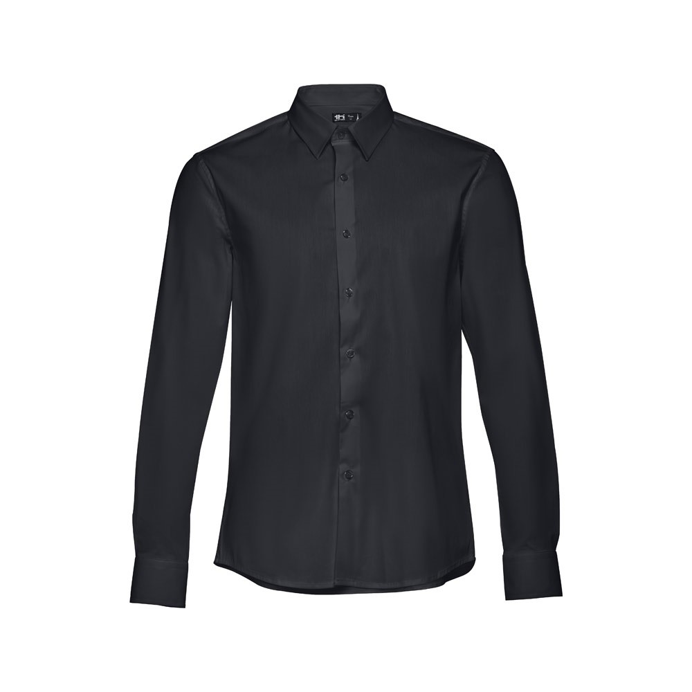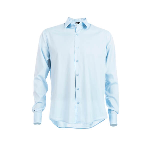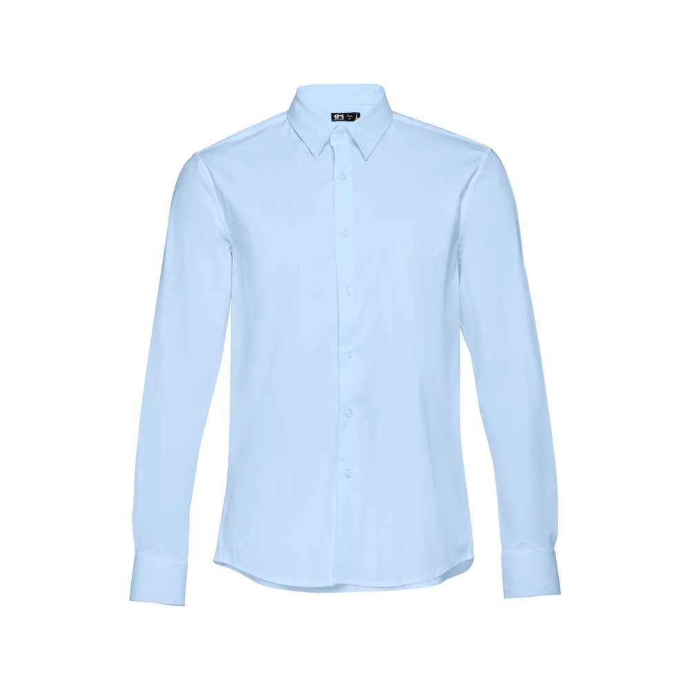Pánska popelínová košeľa vyrobená zo 68% bavlny, 28% polyamidu a 4% elastanu (115 g/m²). Dlhý rukáv. Priliehavý strih. Léga so 7 farebnými gombíkmi. Nastaviteľné manžety s 2 gombíkmi. Veľkosti: S, M, L, XL, XXL