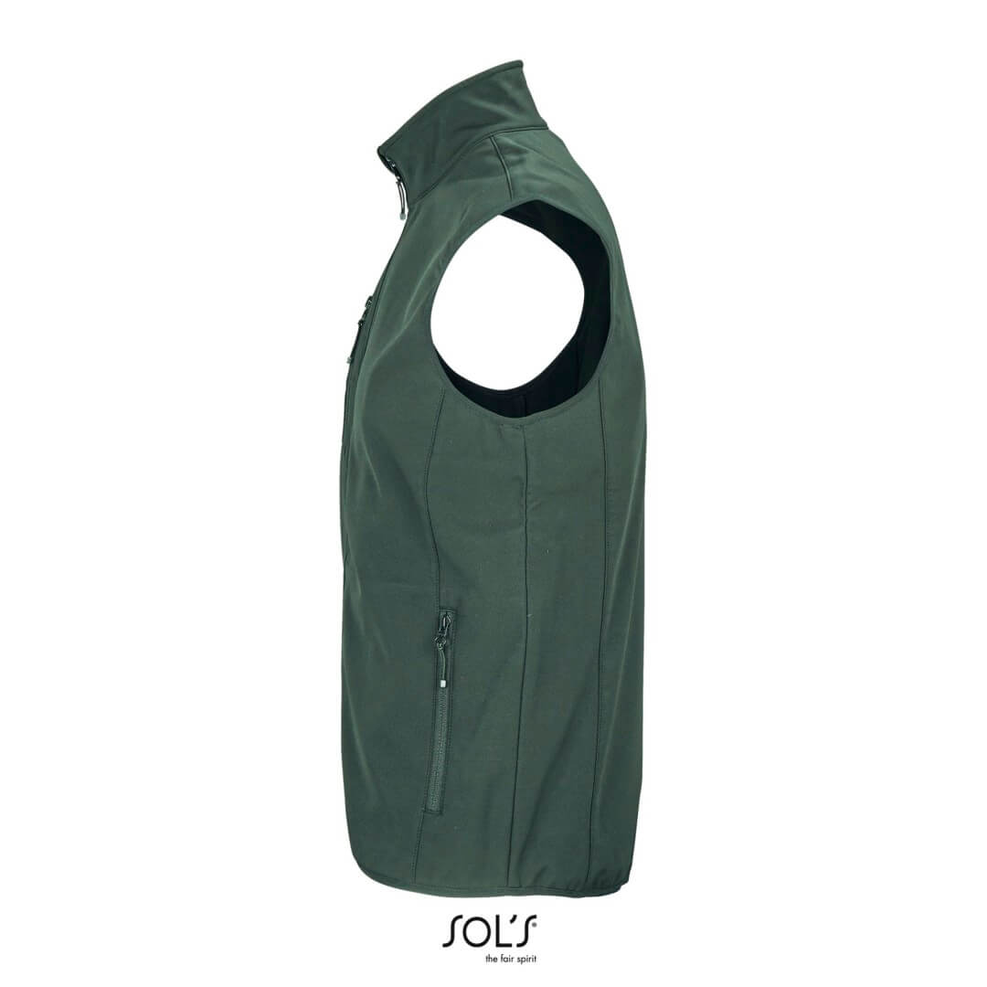 Recyklovaný polyester / elastan – 3 vrstvy, vnútorný flís: 100% polyester | Udržateľná tkanina | Softshell 270 | Pohodlný strih | Otváranie na zips | 2 bočné vrecká a 1 vrecko na hrudi so zipsom | Kontrastné zipsy | Elastický šikmý strih v prieramkoch a na leme | Odtrhávací štítok