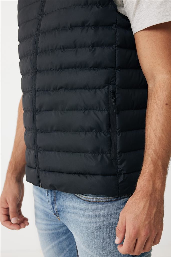 Pánska vesta vyrobená zo 100% post-consumer recyklovaného polyesteru. Perlová výplň zo 100% recyklovaného polyesteru. Obojstranný zips na prednej strane, vrecká na zips po stranách. Ťahače zipsov v ladiacich odtieňoch. Prieramky s elastickým lemovaním s kompletne čistými šviami. Vode repelentná impregnácia bez obsahu fluórinu/PFAS. Obsah recyklovaných materiálov je garantovaný vďaka využitiu technológie AWARE™, ktorá kombinuje možnosť skenovania materiálu a technológiu blockchain. Každý produkt Iqoniq vlastní unikátny štítok s QR kódom, ktorý odkazuje na príslušný digitálny pas produktu. 2% z výťažku každého predaného kusu je darovaných na Water.org. Certifikované OEKO-TEX® STANDARD 100. Dostupné aj v dámskom variante.