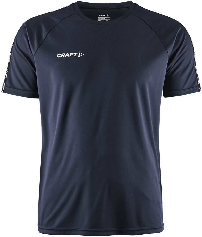 Klasický strih, pohodlný strih a vysoká voľnosť pohybu, krčná lemovka, raglánové rukávy v kontrastnej farbe, tenká páska s logom Craft pozdĺž ramenného švu, elastická tkanina, regulujúca vlhkosť, prateľné na 40 °, nemožno sušiť v sušičke.