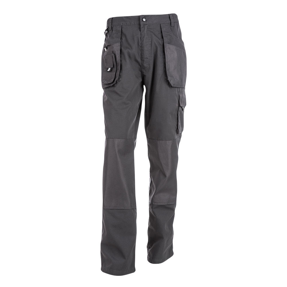 Pánske pracovné nohavice z 80% bavlny a 20% polyesteru (250 g/m²). 8 puzdier. Reflexné plochy v prednej časti. 3 vrecká so zapínaním na suchý zips. Predné vrecko vhodné na mobilný telefón. Otvory na kolenné vypchávky. Pružný pás. Pružný pás. Veľkosti: XS, S, M, L, XL, XXL