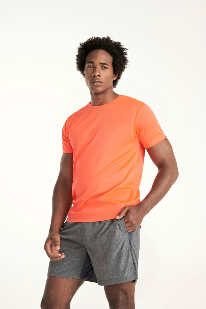 Funkčné tričko vyrobené z 50% recyklovaného polyesteru / 50% polyesteru, mriežkovaný úplet, Control-Dry | Okrúhly výstrih so skrytými švami v rovnakom štýle | Panely na rukávoch | Overlockové švy na prieramkoch a na vložkách rukávov v rovnakom štýle | Logo ECO na rukávoch (nie je možné odstrániť) | Odtrhávací štítok pri krku | Jednotlivé obaly vyrobené z recyklovaného materiálu