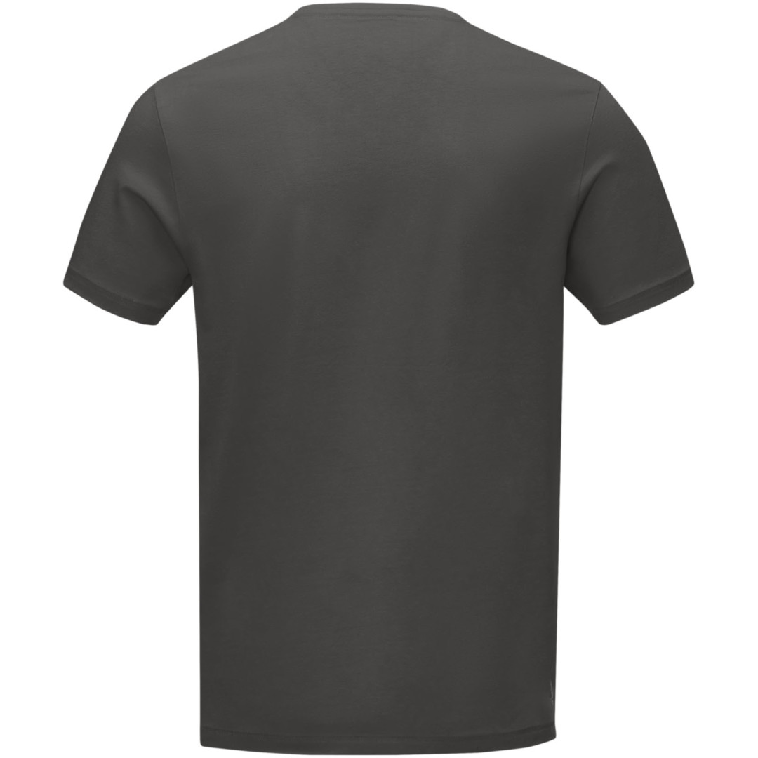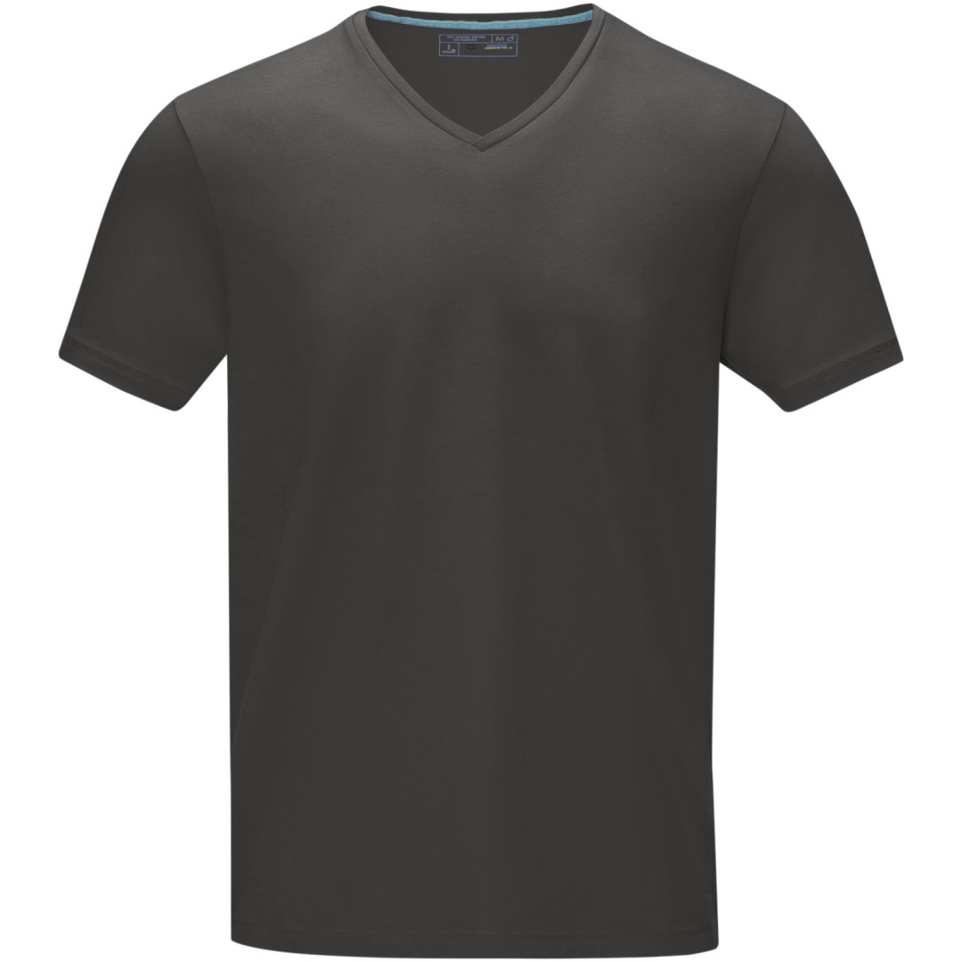 Výstrih v tvare V. Stretchová látka. Detaily s vybraným stehom. Hodvábny prieramník. Potlač štítku technológiou transfer pre väčšie pohodlie. Single Jersey úplet z 95% organickej bavlny certifikovanej GOTS a 5% elastanu, 200 g / m2.