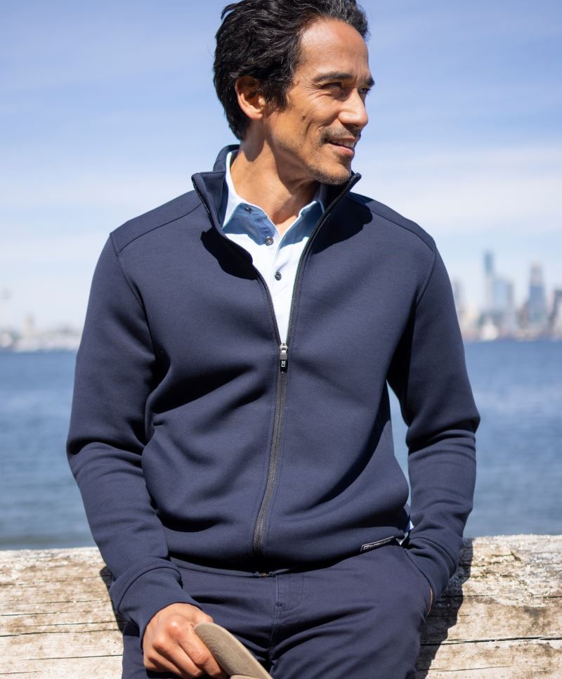 Elastické manžety na rukávoch, 2 bočné vrecká so zipsom, dvojito pletené, mäkký pružný materiál, UV ochrana 50+, prateľné na 40 °, nemožno sušiť v sušičke, nemožno chemicky čistiť.