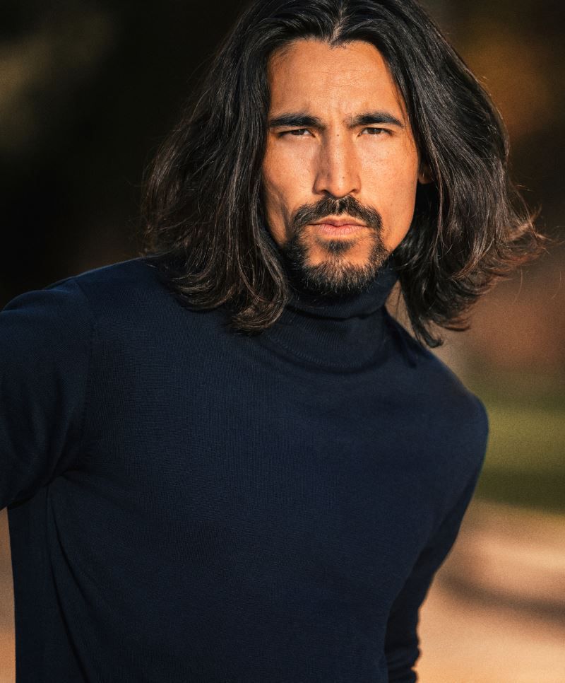 Ohrnutý rolákový golier, 1x1 rebrované manžety a lem, prateľné na 40 °, nemožno sušiť v sušičke, sušiť naplocho.
