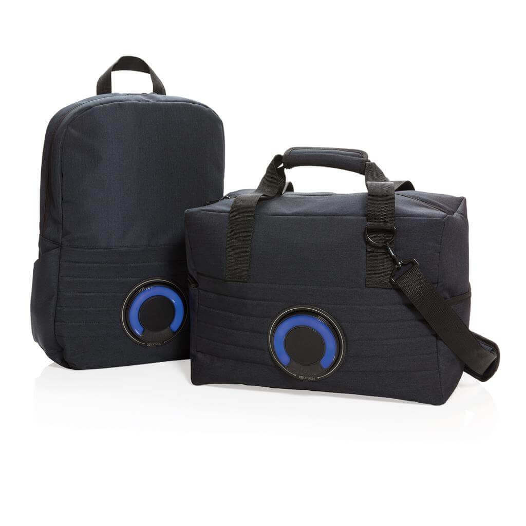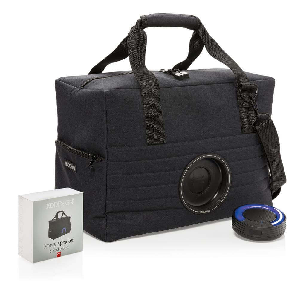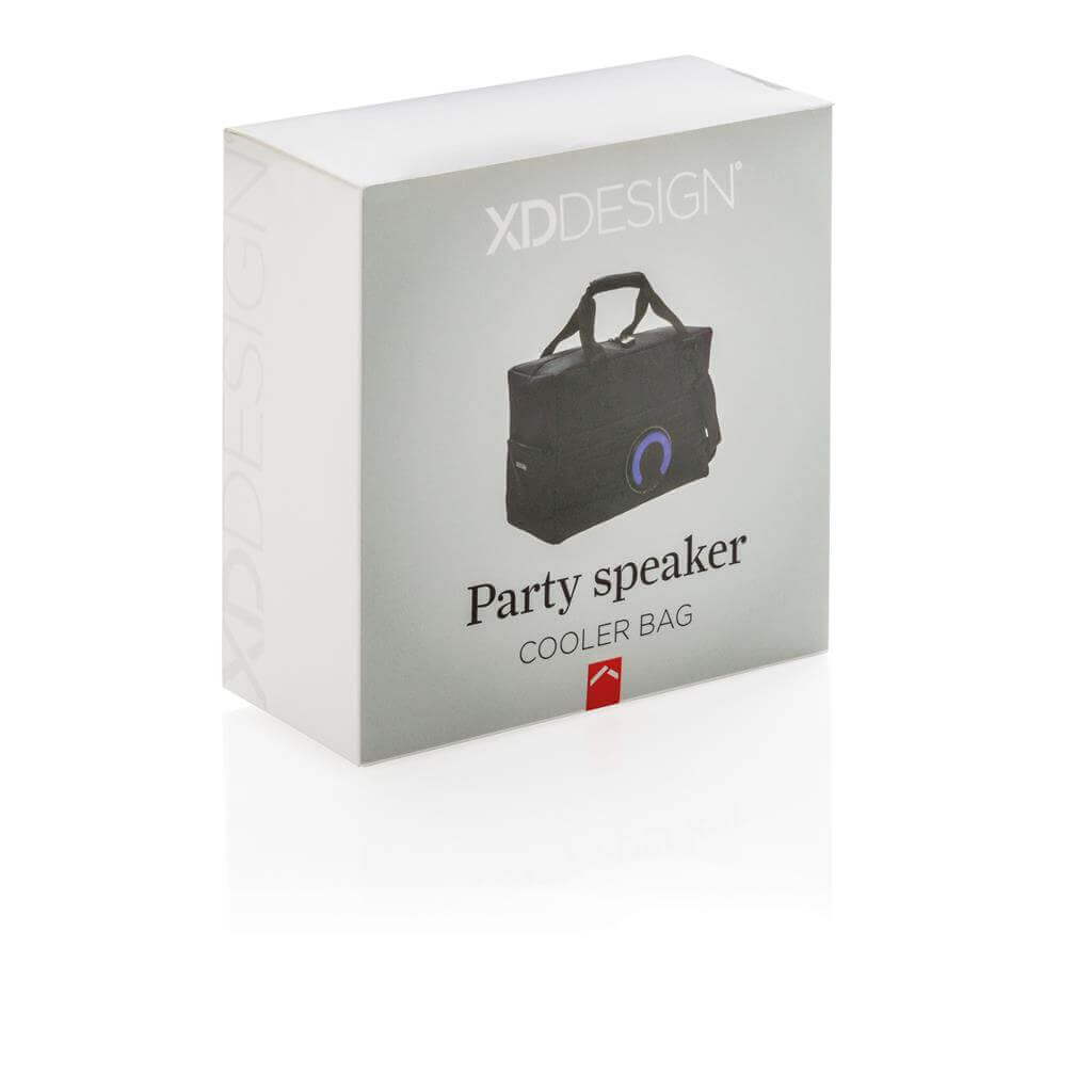 Veľká atraktívna taška na chladenie nápojov s odnímateľným vodotesným IPX5 bezdrôtovým reproduktorom s LED svetlom meniacim farby. Jednoduchých otočením vyberte reproduktor a používajte samostatne. Doba prehrávania: 5 hodín. Taška vhodná až na 32 plechoviek. Obsahuje popruh na rameno. Ochranný vzor® 1 batéria typu Li-poly súčasťou balenia.