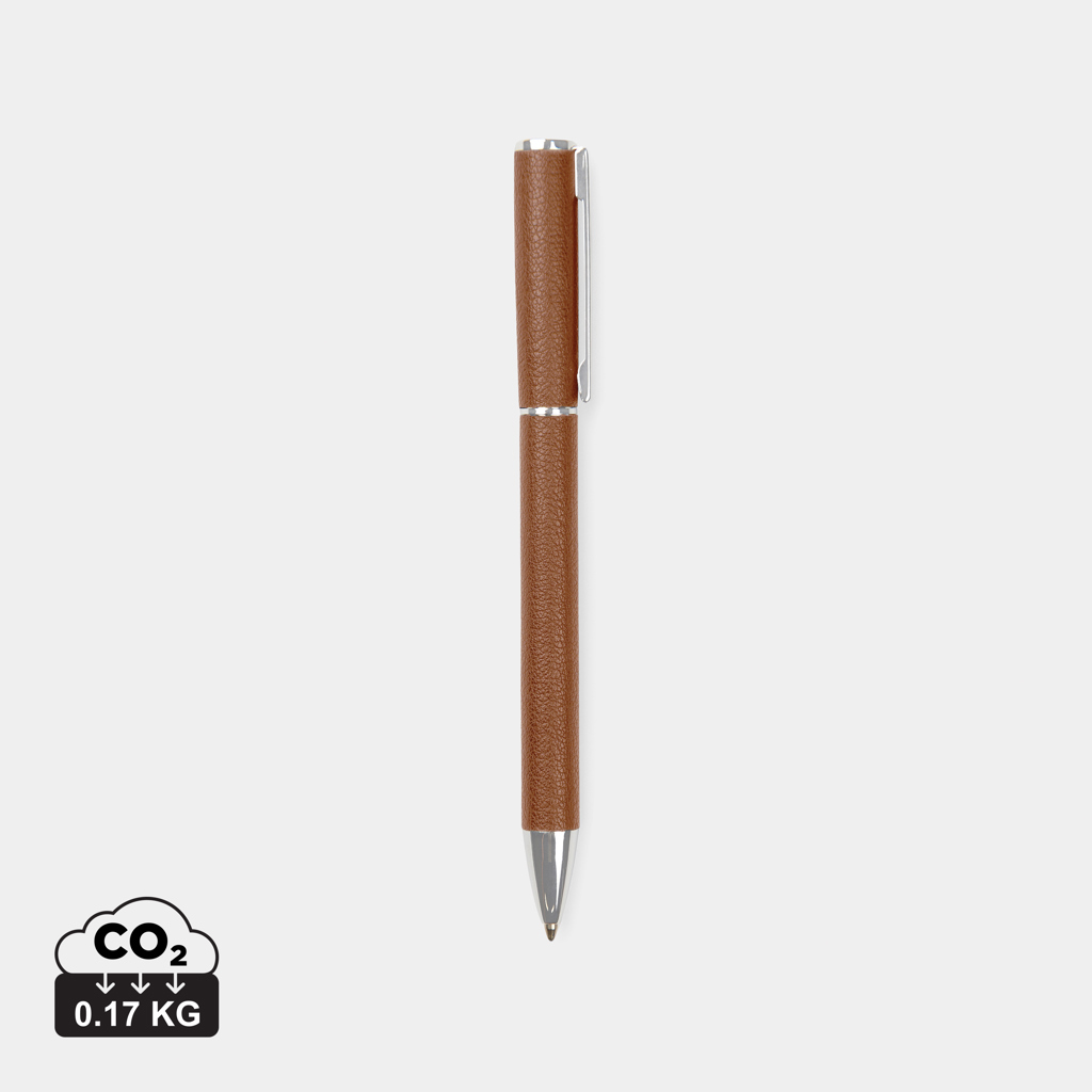 Elegantné pero s modrým atramentom, ktoré prináša dĺžku písania až 1200 metrov a šírku písania 1,0 mm. Vyrobené z recyklovaného hliníka, mosadzných komponentov a PU materiálu. Rad Timo ponúka minimalistické kancelárske doplnky vyrobené z recyklovaných materiálov s certifikáciou RCS. RCS certifikácia zaisťuje garanciu použitia recyklovaného materiálu vďaka transparentnému prehľadu nad dodávateľským reťazcom. Tento produkt obsahuje 27% recyklovaného hliníka s certifikáciou RCS.