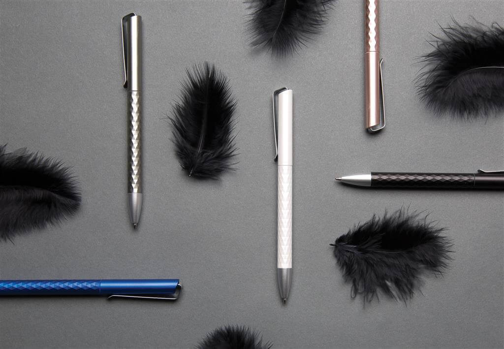 Jedinečné plastové guličkové pero s kovovou sponou a prekrásnym diamantovým vzorom. Obsahuje náplň modrého nemeckého atramentu Dokumental® pre približne 1 200 m textu, s guľôčkou z karbidu volfrámu pre nádherne plynulé písanie.