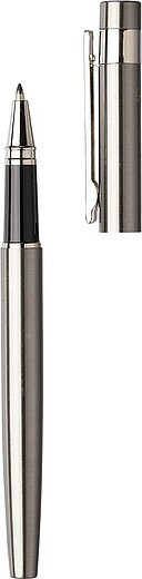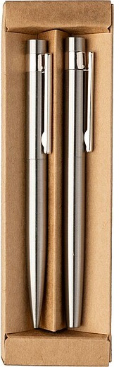Sada recyklovaných pier z nehrdzavejúcej ocele pozostávajúca z guľôčkového pera a rolleru, obe s modrým atramentom. Obsahuje recyklované logo z nehrdzavejúcej ocele na zadnej strane oboch pier. Balené spolu v darčekovej kraftovej papierovej škatuľke. Materiál: nehrdzavejúca oceľ. Rozmery: 17,2 x 5,2 x 2,2 cm
