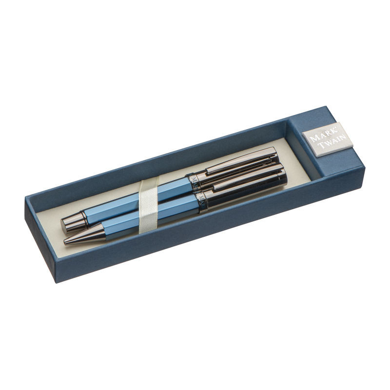 Diela amerického spisovateľa Marka Twaina sa dodnes považujú za veľmi hodnotné a nestrácajú na hodnote i keď je už cez 100 rokov po smrti. Kvality tak vysoko oceňovaného spisovateľa boli inšpiráciou pre vznik mnoho produktov. To čo tomuto úspešnému človeku nemohlo chýbať pri tvorbe jeho nezabudnuteľnej literatúry je pero. Každodenný pomocník nás všetkých vďaka ktorému zaznamenáme všetko, čo potrebujeme. Práve Mark Twain sa stal inšpiráciou k vytvoreniu špeciálnej rady pier, ktoré by nemali chýbať nikomu z vás. Vysoká elegancia, dôraz na dizajn a kvalitné materiály sa snúbia v týchto perách. V našej ponuke nájdete sady pier značky Mark Twain v darčekových krabičkách, ktoré potešia každého, nie len nadšených čitateľov kníh.