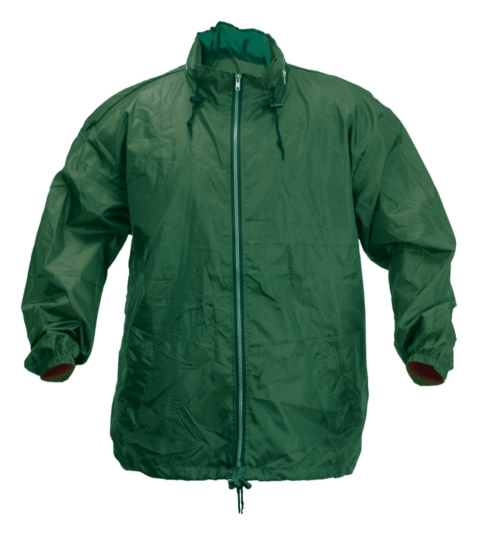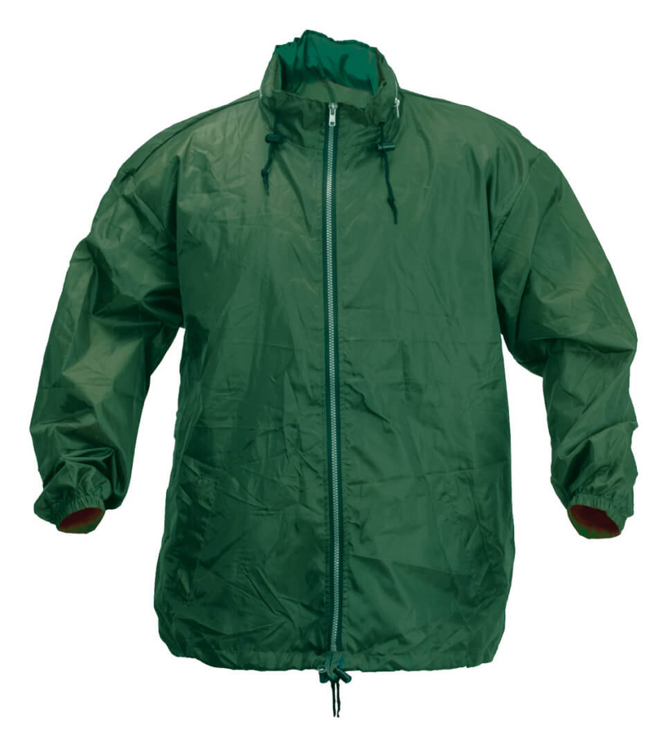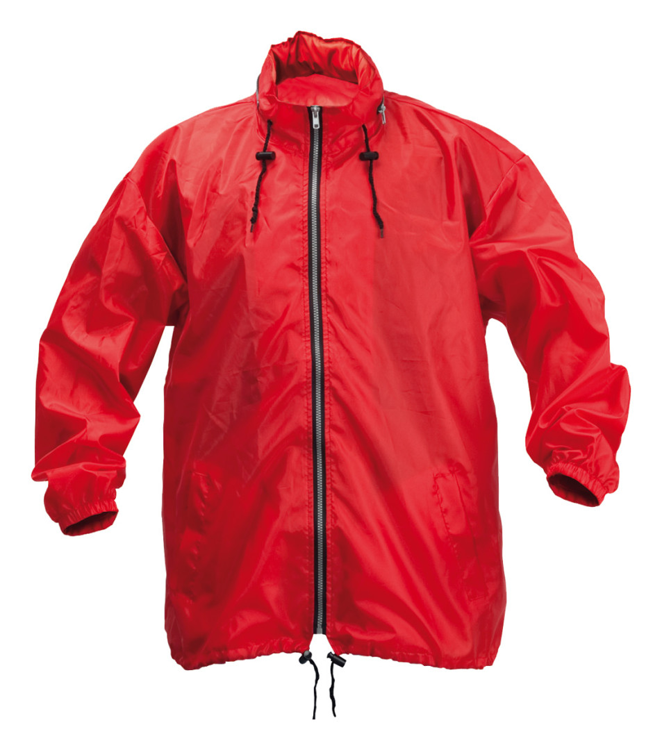 Pláštěnka na zip se skládací kapucí v límci a 2 předními kapsami. Nastavitelné šňůrky v límci a v pase. 190T polyester.