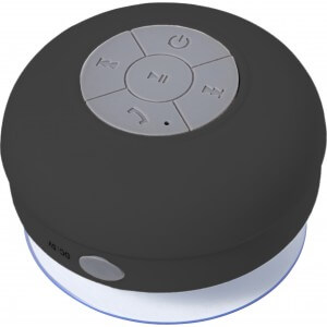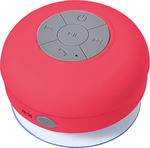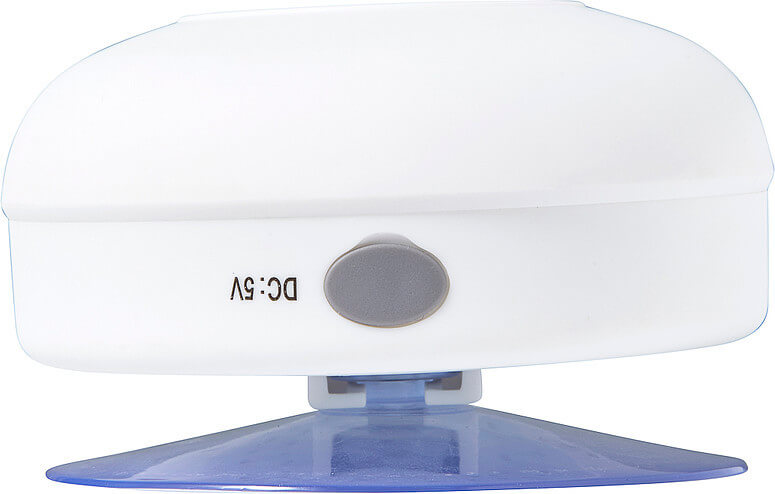 Plastový reproduktor (2 watty) s bezdrôtovou technológiou, odolný voči vode. Perfektné odpovedanie na vaše hovory bez použitia rúk alebo počúvanie hudby pri sprchovaní. S prísavkou umiestniť na hladké povrchy. Batterylife: pribl. 2 hodiny.