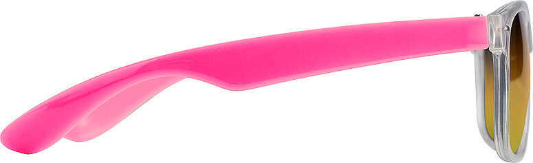 Plastové slnečné okuliare s ochranou proti UV400, 'olejové sklo' a farebné ramená.