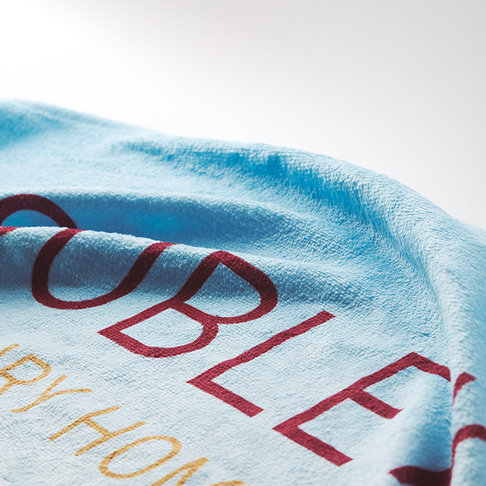 Plážové uteráky s plnofarebnou potlačou vyrobené z polyesteru (40 %) a bavlny (60 %), 300 g/m2. Predná velúrová polyesterová strana uteráka je potlačená plnofarebne a má jemnú textúru.