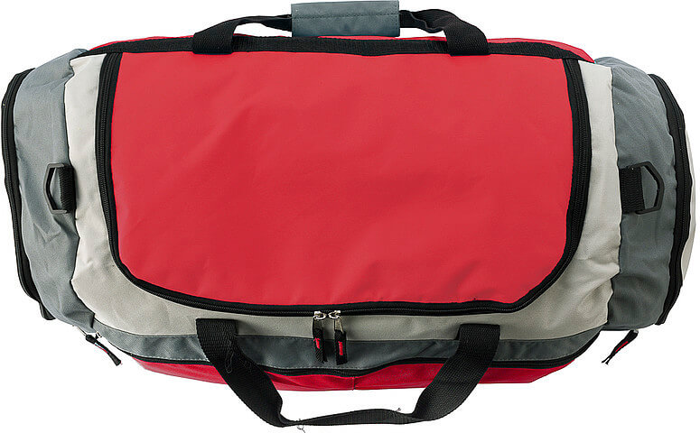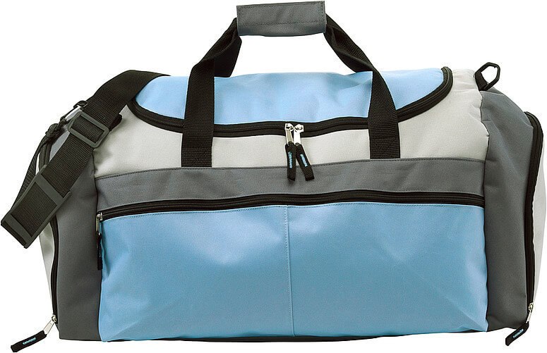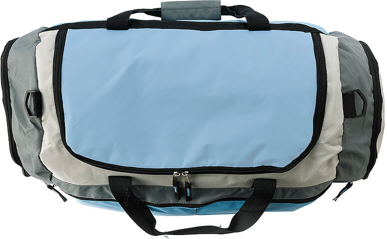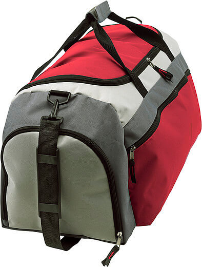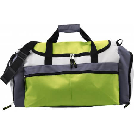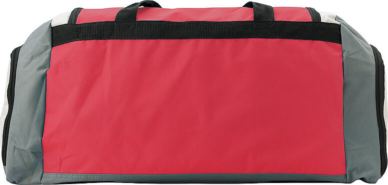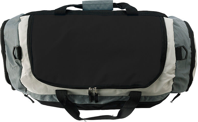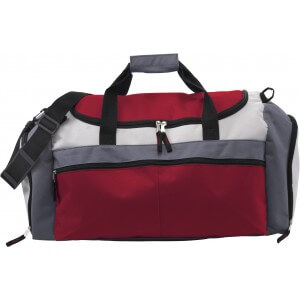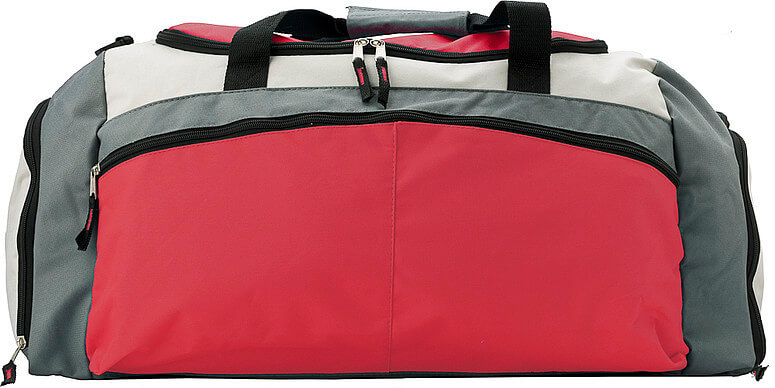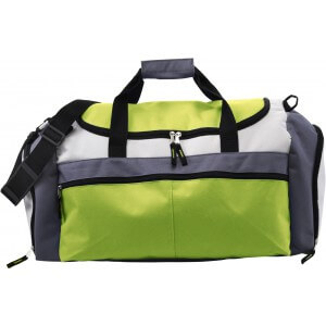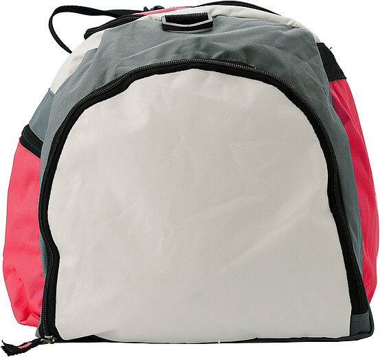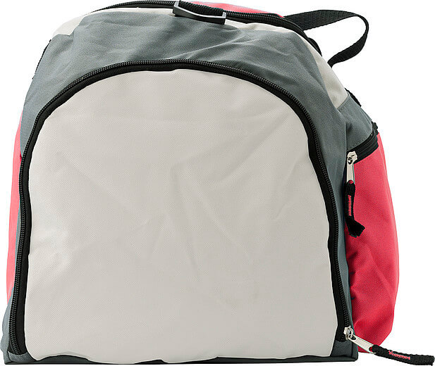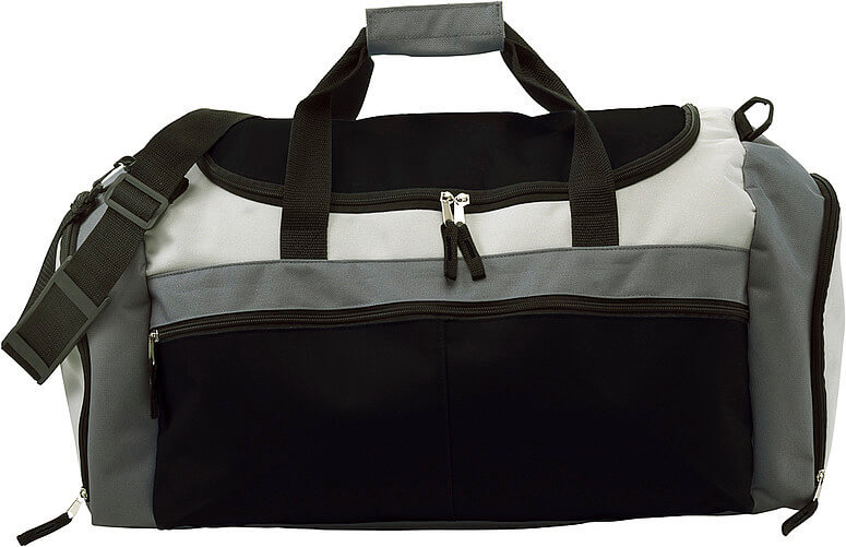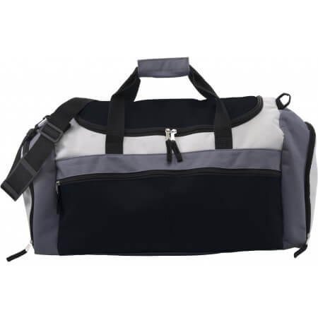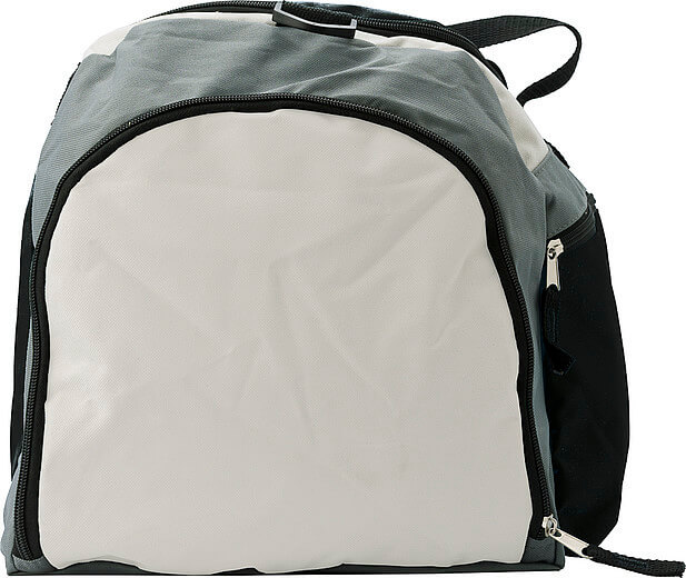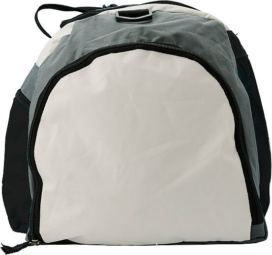 Športová taška z polyesteru (600D) s jedným hlavným priestorom, dvoma koncovými vreckami a jedným bočným vreckom na zips, držadlami na nosenie a nastaviteľným ramenným popruhom.