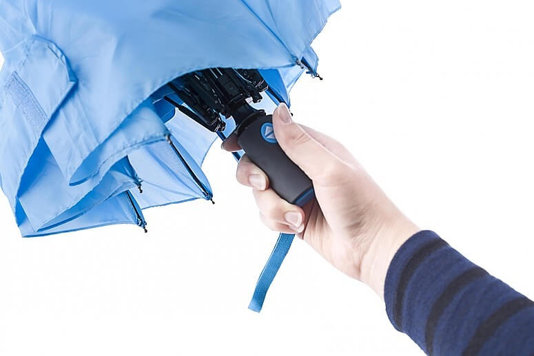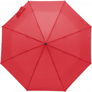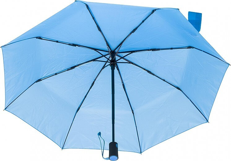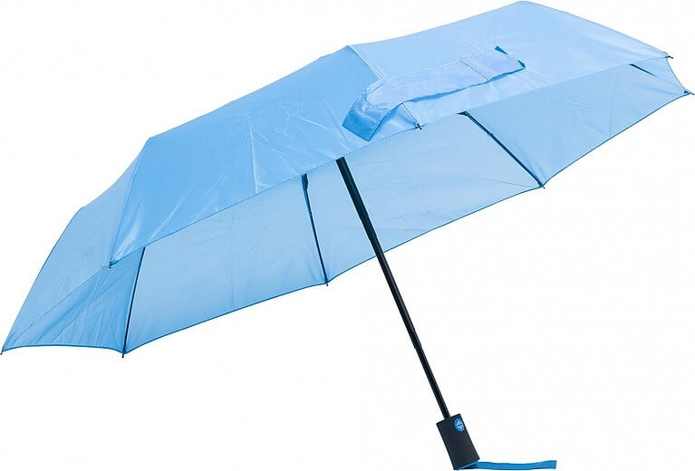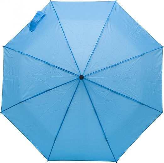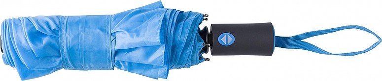 Polyesterový (170T) dáždnik s automatickým otváraním a zatváraním s ôsmimi panelmi. Kovový hriadeľ a rám, plastová rukoväť s gumovou úpravou. Odolný voči búrke.