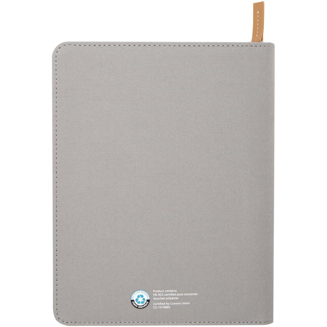 Portfólio A5 Nomumi so zaoblenými rohmi je praktickou pomôckou do každej kancelárie a je vyrobené z recyklovaného plastu. Disponuje 64 linajkovými listami papiera v krémovej farbe s gramážou 80 g/m2, zapínaním na zips, pútkom na pero a rozšíriteľným vreckom.