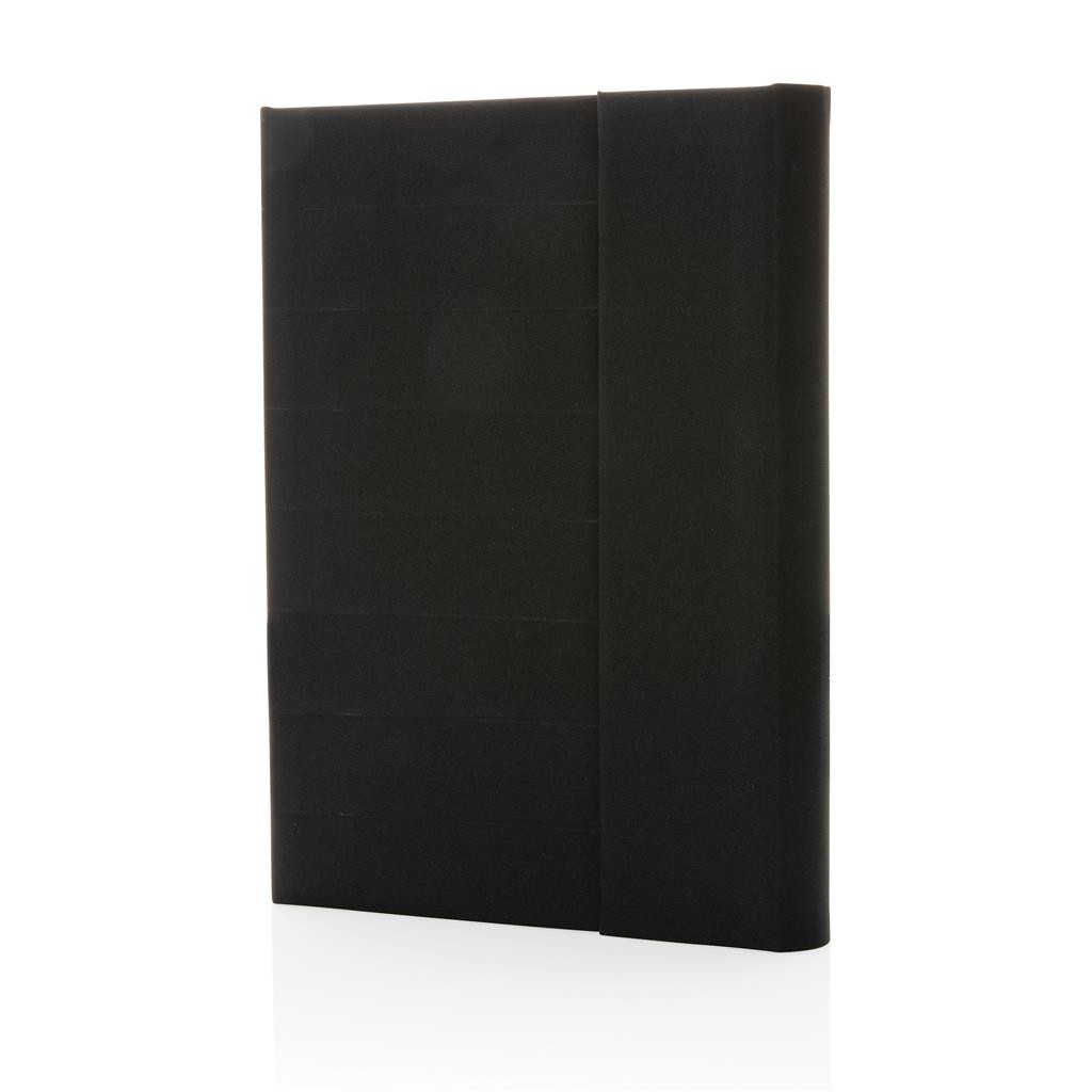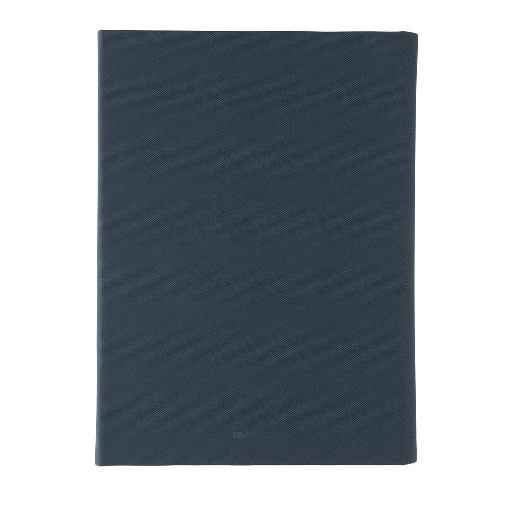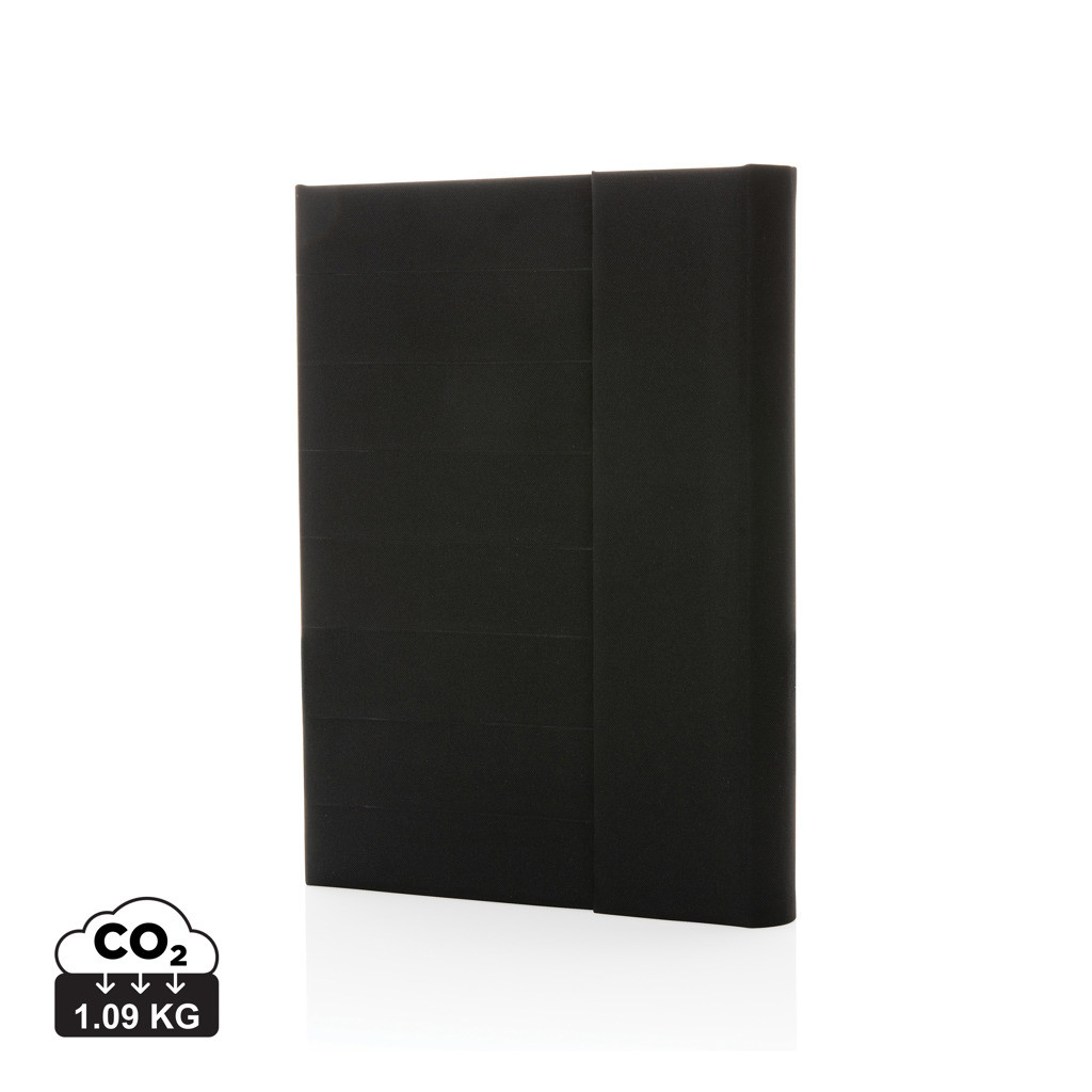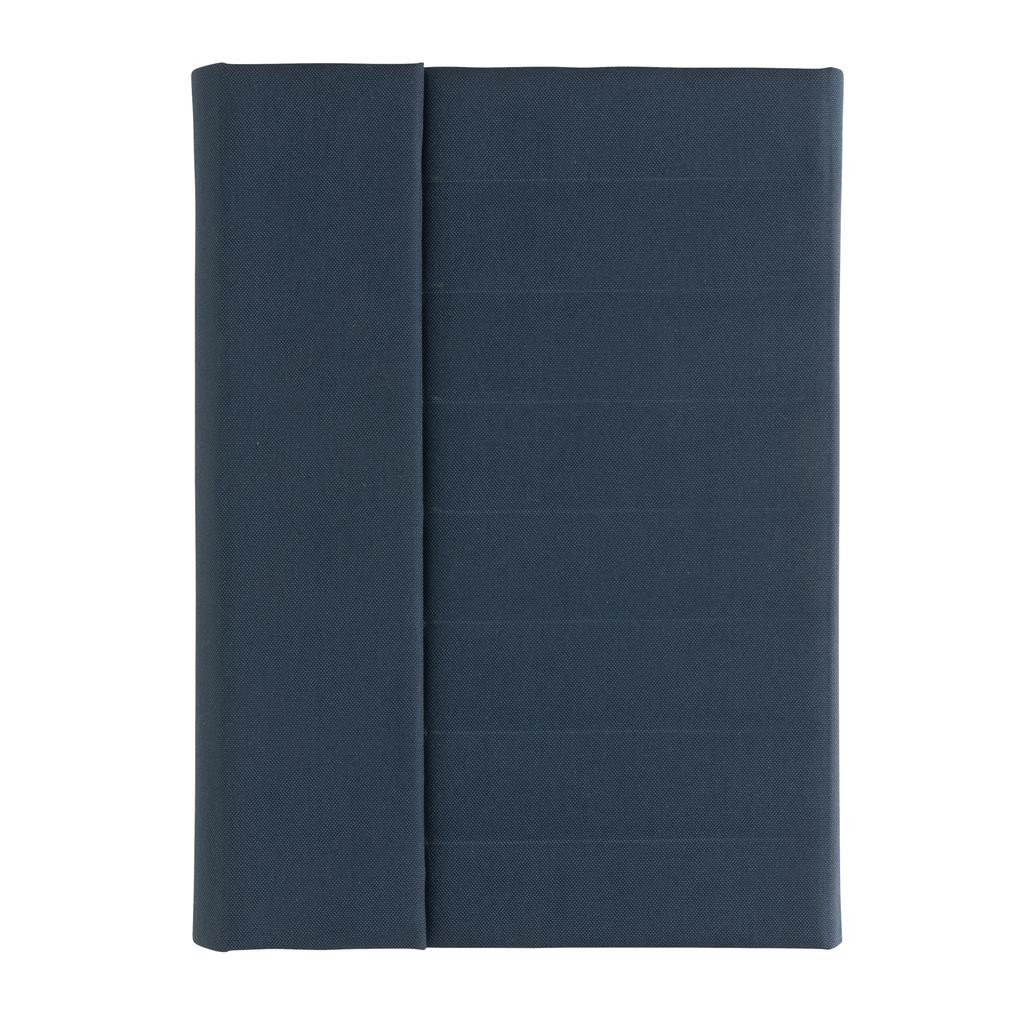 Moderné portfólio vo formáte A5 z kolekcie Impact. Vnútri obsahuje 1 veľké vrecko, 2 sloty na vizitky alebo karty, pútko na pero a ladiaci vymeniteľný poznámkový blok z recyklovaného linkovaného krémového papiera (64 listov/128 strán, 80g/m2). Vyrobené z recyklovaného polyesteru vrátane skenovateľnej zložky AWARE™ garantujúce obsah recyklátu. Na výrobu bolo využitých 6,5 500ml PET fliaš a bolo usporených 3,9 litrov vody. Z výťažku každého predaného produktu z kolekcie Impact je navyše prispených 2 % na podporu iniciatívy Water.org. Bez PVC.