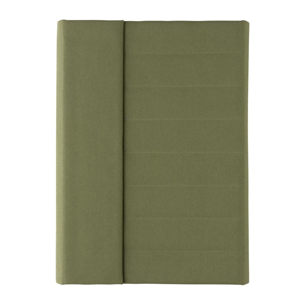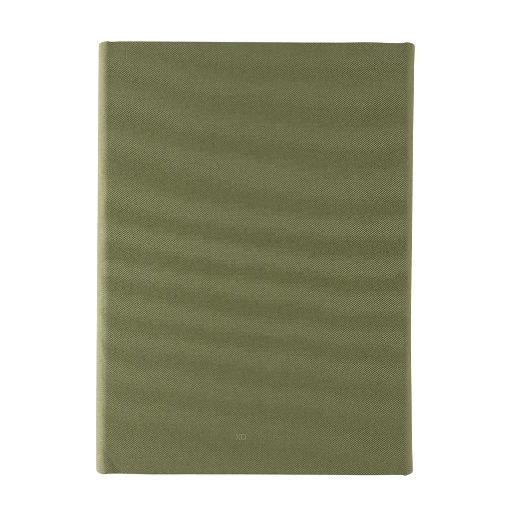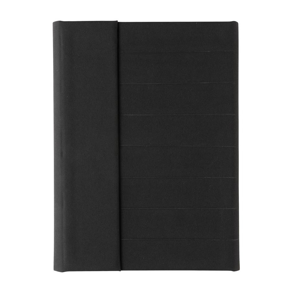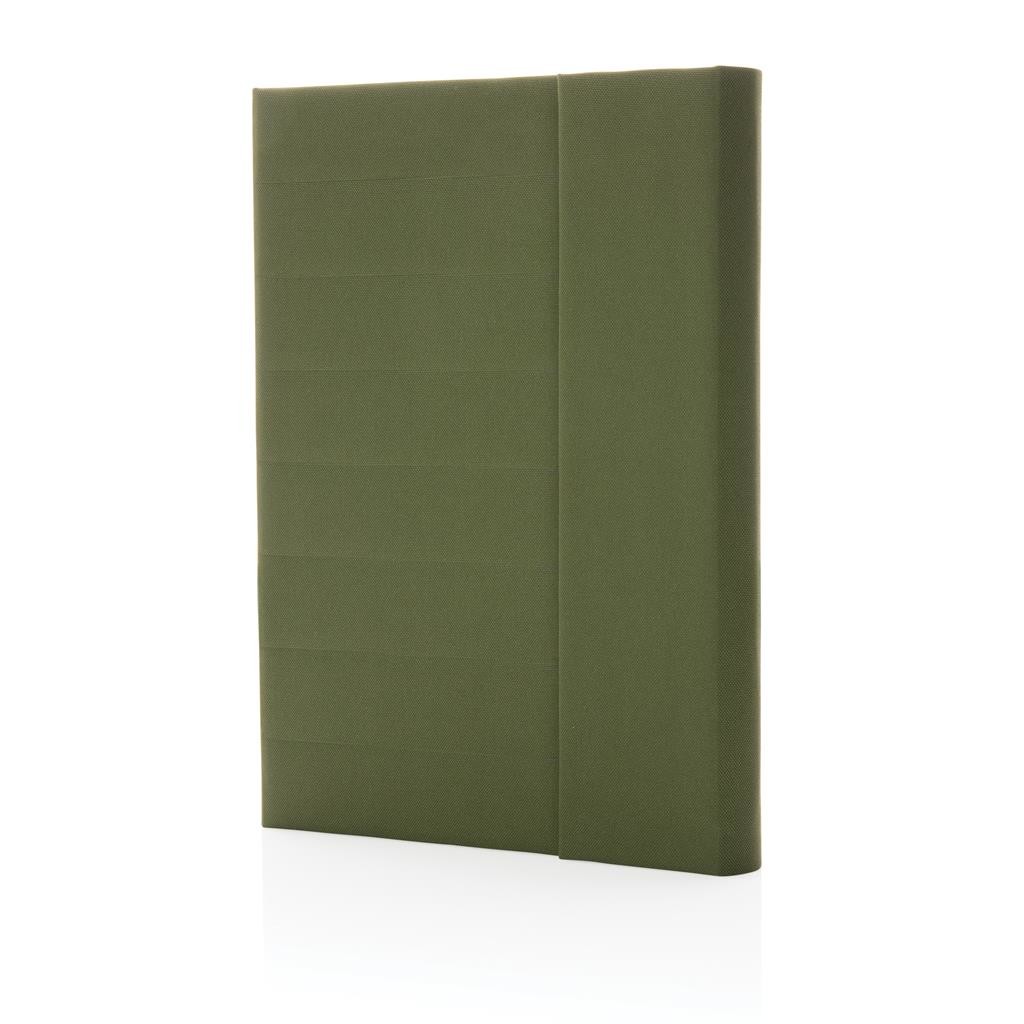 Moderné portfólio vo formáte A5 z kolekcie Impact. Vnútri obsahuje 1 veľké vrecko, 2 sloty na vizitky alebo karty, pútko na pero a ladiaci vymeniteľný poznámkový blok z recyklovaného linkovaného krémového papiera (64 listov/128 strán, 80g/m2). Vyrobené z recyklovaného polyesteru vrátane skenovateľnej zložky AWARE™ garantujúce obsah recyklátu. Na výrobu bolo využitých 6,5 500ml PET fliaš a bolo usporených 3,9 litrov vody. Z výťažku každého predaného produktu z kolekcie Impact je navyše prispených 2 % na podporu iniciatívy Water.org. Bez PVC.