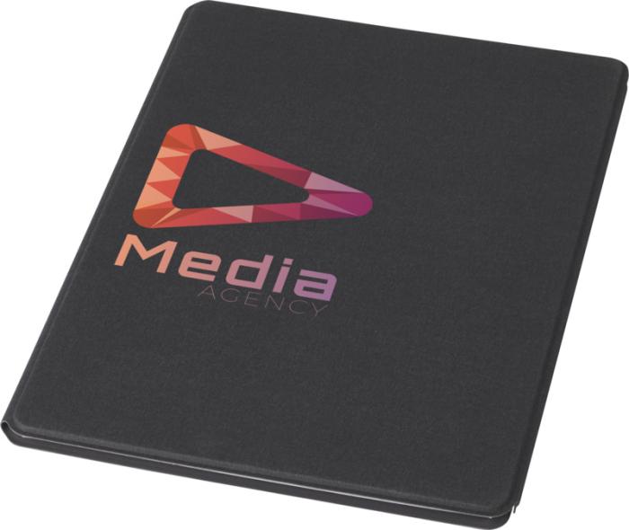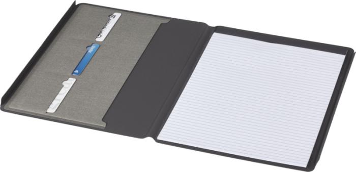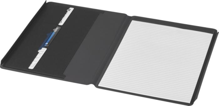 Portfólio s certifikáciou RCS Kunveno je čiastočne vyrobené z recyklovaného polyesteru, vďaka čomu je toto portfólio udržateľnejšie voľbou, pretože pomáha znižovať používanie pôvodných surovín. Obsahuje magnetický uzáver a 20 bielych lemovaných listov z recyklovaného papiera s gramážou 80 g/m2 z udržateľných zdrojov.