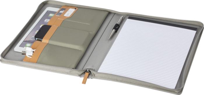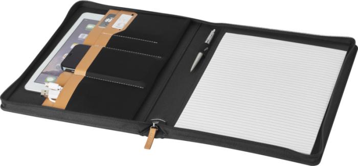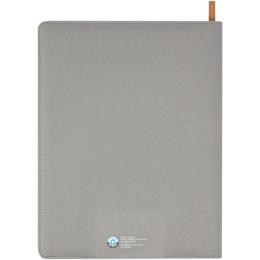 Portfólio Nomumi s certifikáciou RCS je čiastočne vyrobené z recyklovaného spotrebiteľského polyesteru, vďaka čomu je toto portfólio udržateľnejšou voľbou. Zapínanie na zips, pútko na pero, harmonikové vrecko a 20 bielo lemovaných listov z recyklovaného papiera s hmotnosťou 70 g/m2 z udržateľných zdrojov. Pero a ďalšie príslušenstvo zobrazené na fotografiách nie sú súčasťou tejto položky.