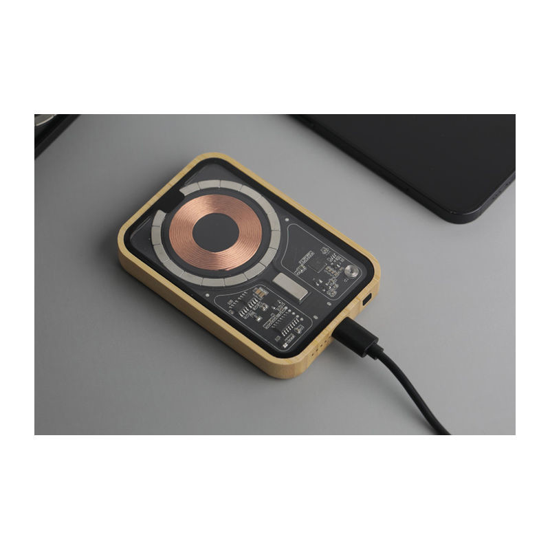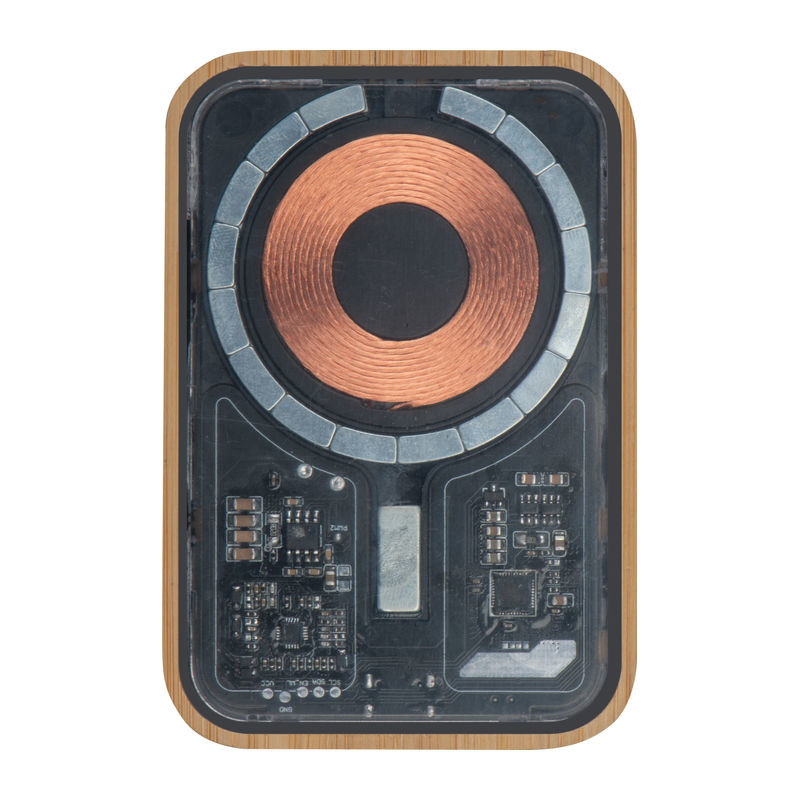 Magsafe® z bambusu a priehľadnou prednou časťou s výkonom 5 000 mAh na bezdrôtové nabíjanie do 10 wattov. Integrovaný magnet pripevní nabíjačku k telefónu Iphone® a zabezpečí rýchle a bezdrôtové nabíjanie. Kompatibilná s Iphone® 12 a novšími verziami, možno ju použiť ako bezdrôtovú nabíjačku pre iné modely podporujúce QI.