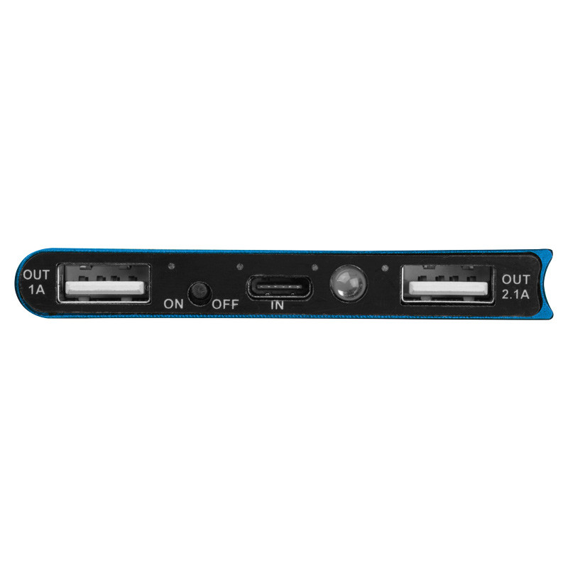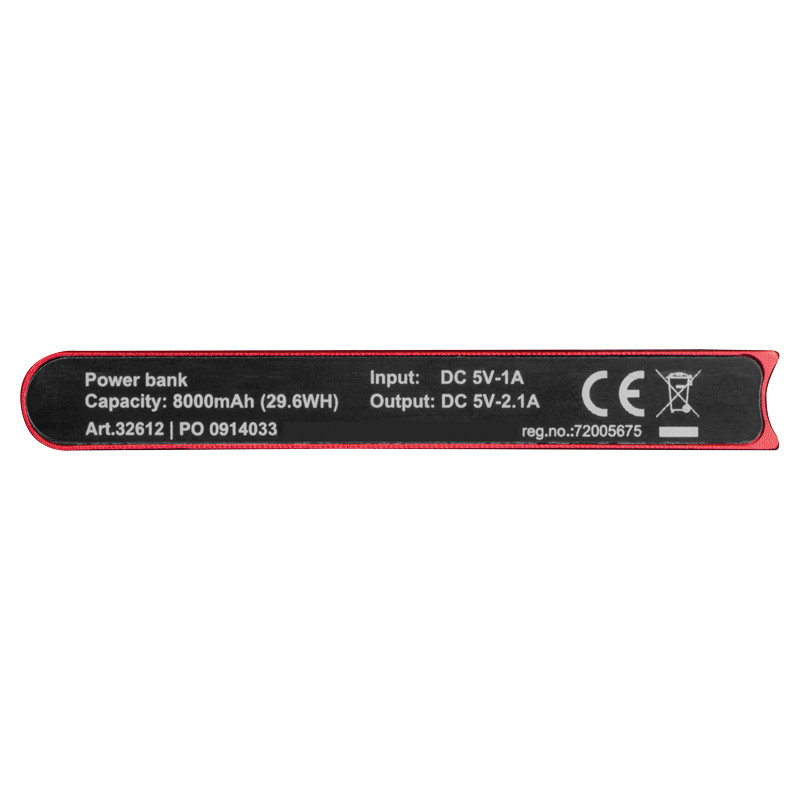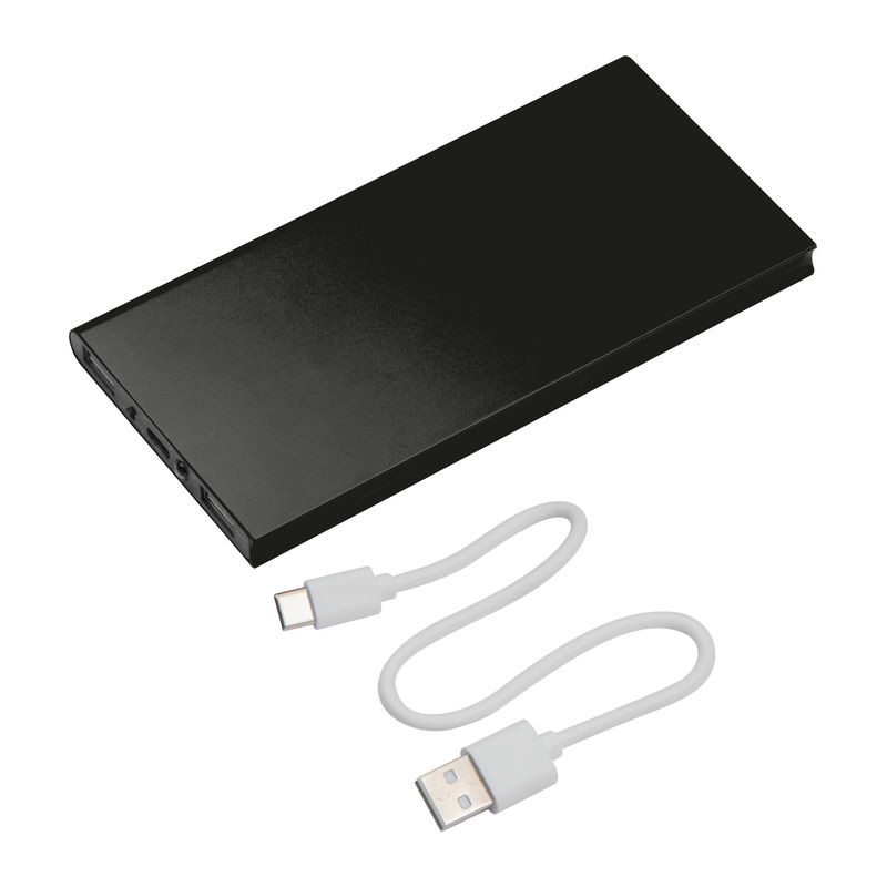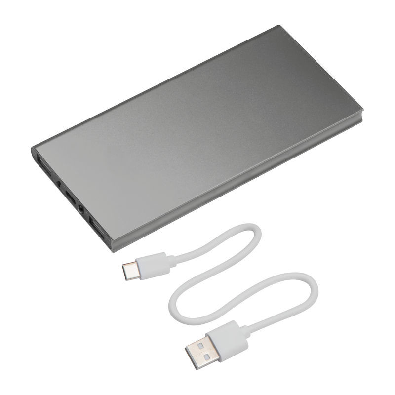 Hliníková powerbanka s kapacitou 8000 mAh, indikátorom stavu nabitia, USB-C káblom.