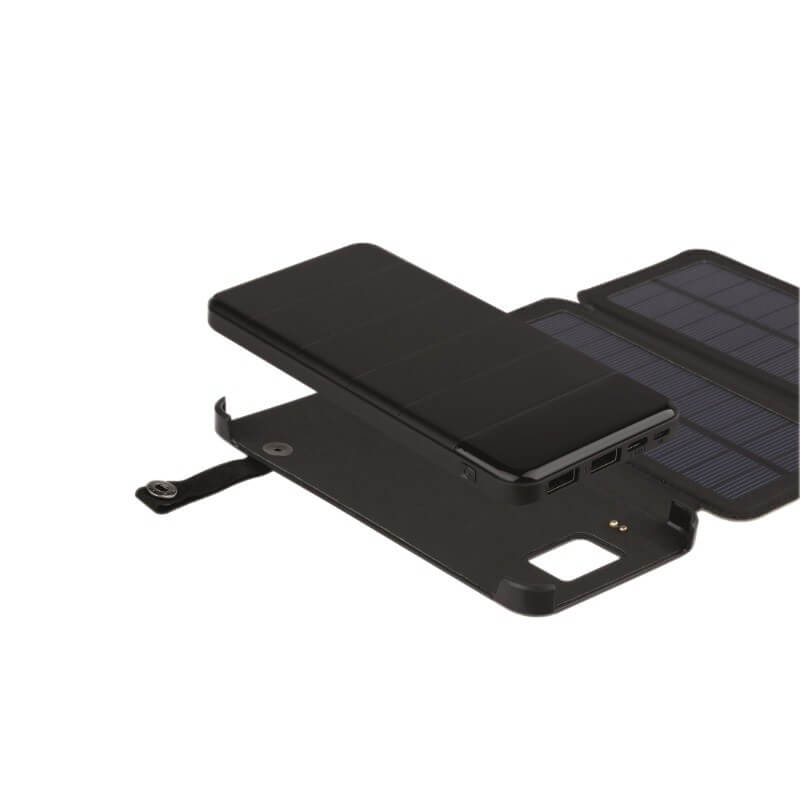 Radi jazdíte na cesty a chcete mať istotu, že sa vám mobilné zariadenie ľahko nevybije? Potom určite oceníte duálnu power banku so solárnymi panelmi. Praktická externá nabíjačka je opatrená rovno 2 solárnymi panelmi pre zvýšenie výkonu a rýchlejšie nabíjanie. Power banka má kapacitu 10000 mAh, takže poskytne dostatok energie na poriadne nabitie mobilných zariadení počas cestovania. Duálna power banka s prídavnými solárnymi panelmi je jedinečným spoločníkom na cestách. Ich veľká plocha výrazne zvyšuje príkon a tým aj rýchlosť solárneho nabíjania batérie power banky (samozrejme ju možno nabiť aj štandardnou cestou cez USB port). Power banku je možné navyše ľahko vybrať z puzdra a dosiahnuť tak kompaktnejšie rozmery. A ako sa u outdoorových produktov pristane, nesmie chýbať výkonné LED svietidlo!