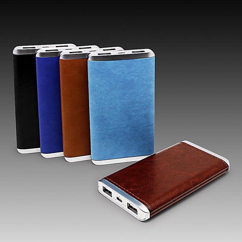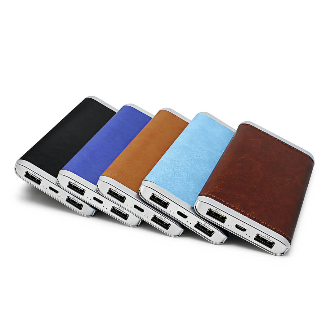 Luxusne vyzerajúca power banka na nabíjanie dvoch zariadení naraz je vecou, ktorou sa hodí mať pri sebe. Štýlový vzhľad ukrýva power banku s kapacitou od 4000 mAh do 6000 mAh. Duálna externá nabíjačka dokáže vďaka dvom výstupom nabíjať dve zariadenia naraz. Elegantný vzhľad zaisťuje imitácia kože po celom obvode malej a skladnej krabičky. Power banka je vhodná na nabíjanie mobilných telefónov, prehrávačov alebo tabletov. Vybrať si môžete z mnohých rôznych farieb a variantov potlače alebo razby do syntetickej kože.
