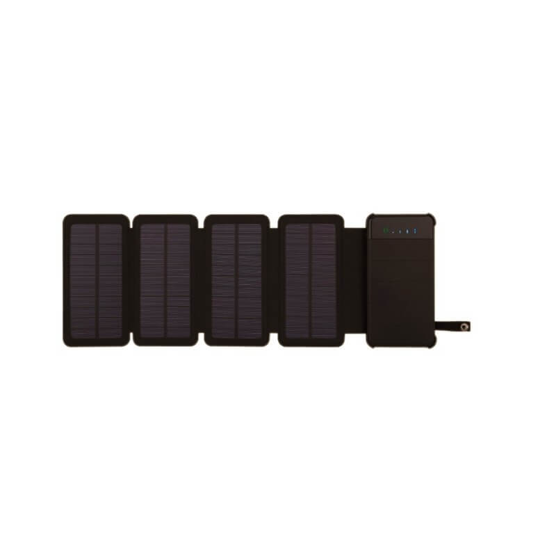 S power bankou so 4 solárnymi panelmi maximálne využijete energiu zo žiarenia na nabíjanie svojho mobilného zariadenia. Solárne panely sú múdro poskladané v puzdre, takže pri zložení zväčšia veľkosť power banky len minimálne. Už samotná kapacita externej nabíjačky 10000 mAh je dostačujúca pre niekoľkonásobné nabitie mobilného zariadenia. Nabíjať ju je možné klasicky cez USB aj vystavením panelov dennému svetlu. Pri aktivácii všetkých solárnych panelov sa vďaka zvýšeniu príkonu celý proces solárneho nabíjania výrazne urýchli. Praktickú power banku je možné zo „solárneho puzdra“ vybrať, a tak ju oceníte na cestách mimo civilizácie aj pri bežnom nabíjaní. Puzdro je možné doplniť potlačou či razbou podľa vlastného priania. Navyše je power banka vybavená výkonným LED svietidlom.