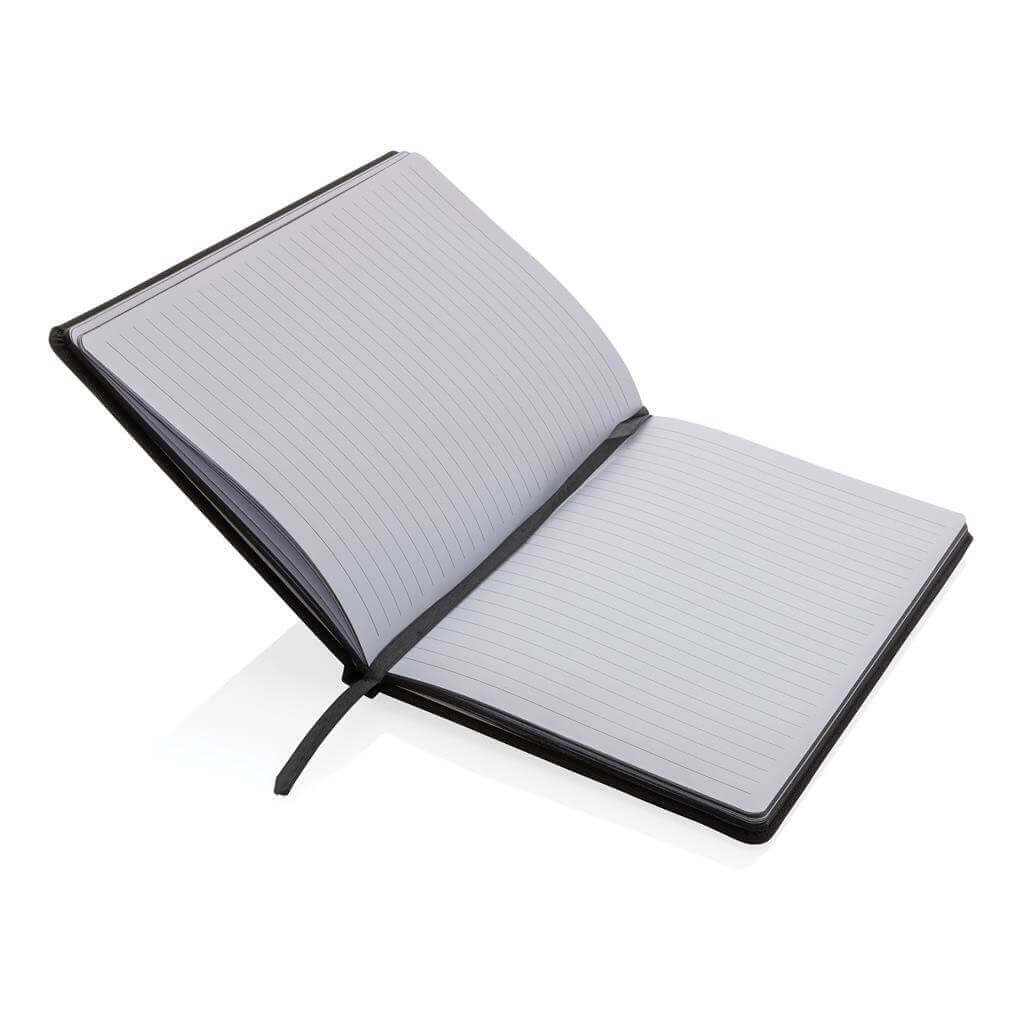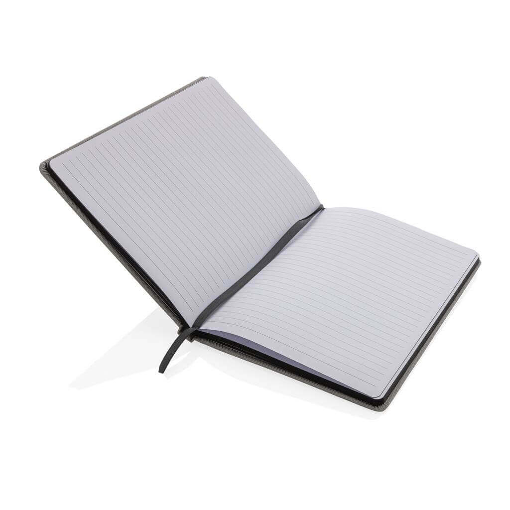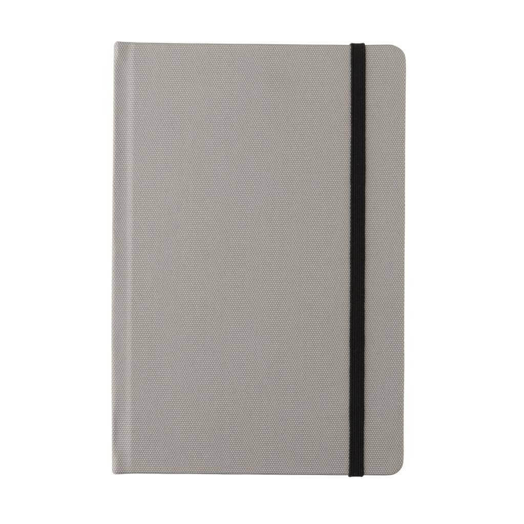 Poznámkový blok formátu A5 vyrobený z GRS recyklovaných materiálov. GRS (Global Recycle Standard) je globálny štandard, ktorý umožňuje overiť použitie recyklovaného materiálu v produkte naprieč celým dodávateľským reťazcom. Celkový podiel recyklátu podľa váhy produktu: 68 %. Obsahuje 80 listov/160 strán linkovaného papiera o gramáži 70g/m2.