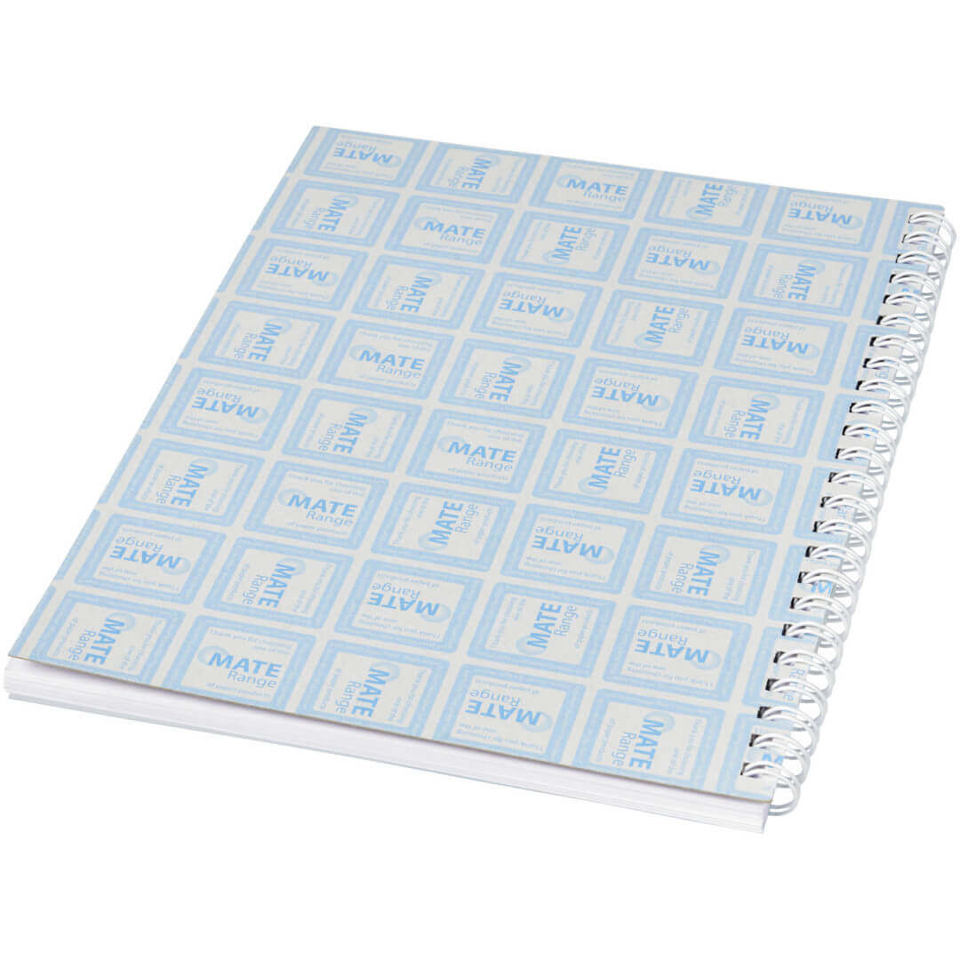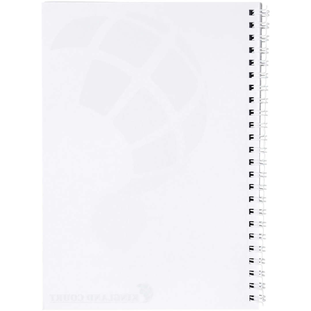 Špirálový poznámkový blok Desk-Mate® A5 Obsahuje listy čistého papiera 80 g / m2. Štandardne sa dodávajú v balení po 50 listoch, dostupné aj po 100 listoch. Poznámkový blok obsahuje priehľadnú obálku z polypropylénu s hrúbkou 500 mikrónov (250 g / m2). Papier, 80 g / m2, PP plast