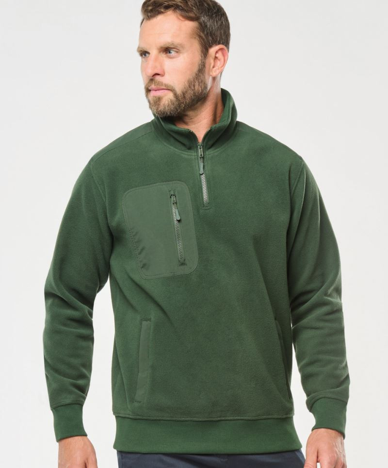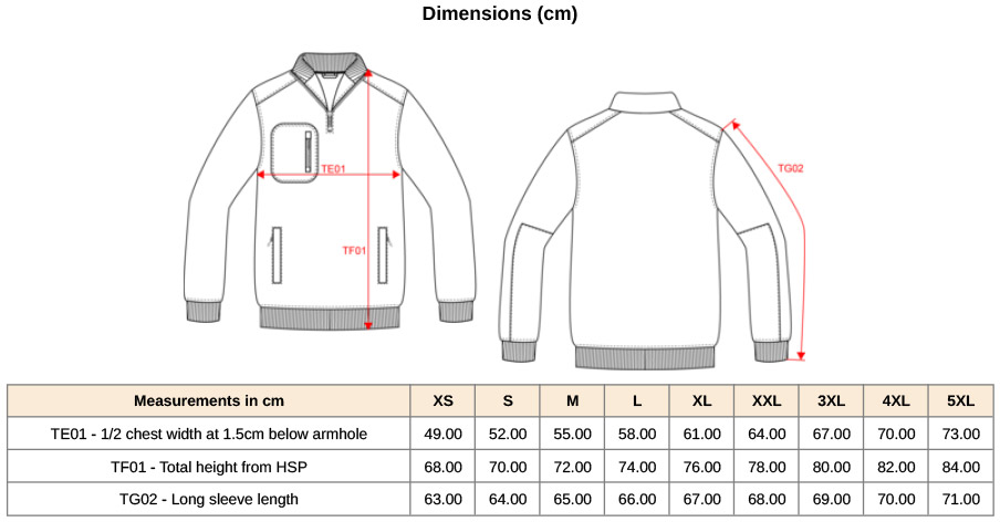 Rovný strih, taslanové vsadky na ramenách a hrudi, 2x2 rebrované manžety a lem, 2 bočné vrecká a 1 náprsné vrecko so zipsom, pútko na zavesenie, štítok TearAway, prateľné na 40 °