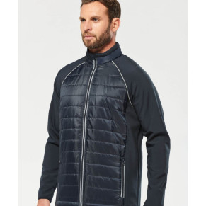 Materiál: 250g/m², predná a zadná strana: 100% polyester Taffeta ®, 230T, PVC povrch, rukávy: 100% polyester, 2-vrstvový softshell, fleecová podšívka. Vodoodpudivý materiál, fleecová podšívka na rukávoch a ramenách pre optimálne teplo, 2 bočné vrecká so zipsom, prístup k zušľachteniu na leme, 4-cestný streč, odolný materiál, menovka všitá vo vnútri, prateľné na 40 °, nemožno žehliť, nemožno sušiť v sušičke, nemožno chemicky čistiť.