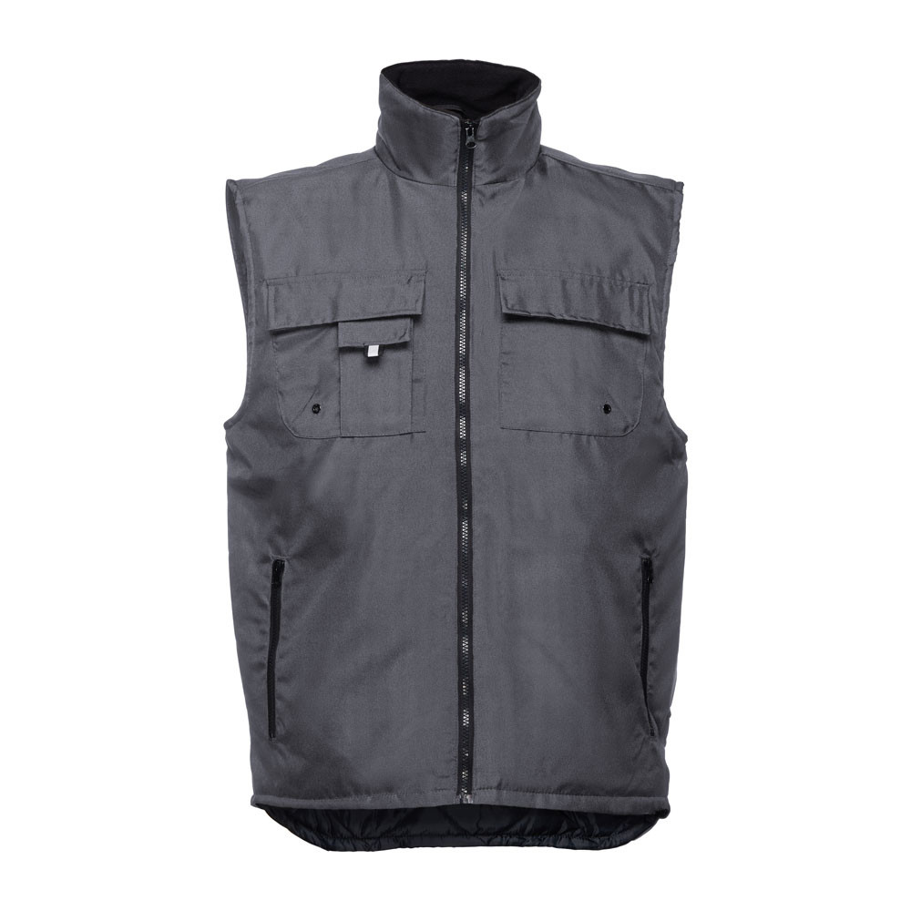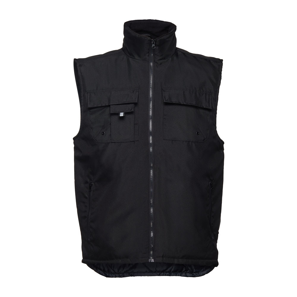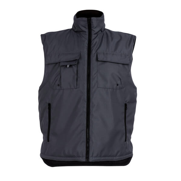 Vypchaná pracovná vesta s podšívkou zo 100% polyesteru a golierom podšitým sieťovinou z materiálu polar. 6 vreciek: 5 predných vrátane vkladaných na zips a 1 na mobilný telefón. 1 vnútorné vrecko. Bočné gumička na prispôsobenie k telu. Zips v dolnej časti zadného dielu na lepšie prispôsobenie. Veľkosti: S, M, L, XL, XXL, 3XL
