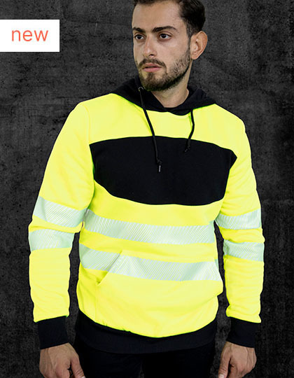 Rad pre firemnú identitu | EN ISO 20471:2013/A1:2016, trieda 3 | Materiály: STANDARD 100 od OEKO-TEX ® | Dva delené 5cm reflexné pruhy okolo tela a rukávov | Rebrovaný okrúhly výstrih a manžety v kontrastnej čiernej farbe | Veľká potlačová oblasť na hrudi | Kapucňa s čiernym lemom | Vrecko klokanka | Výrobca zaručuje reflexné vlastnosti v súlade s normou EN pre 25 praní pri 60 °C. | Vybavené čiarovým kódom EAN | Návod na použitie v 24 úradných jazykoch EÚ | Jednotlivo balené v polyetylénových vreckách.