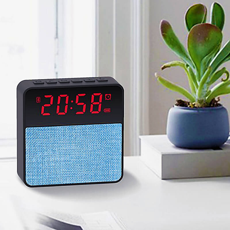Praktický Bluetooth reproduktor s textilnou sieťkou nielen prehráva hudbu, ale slúži ako budík a digitálne hodiny. Vylepšite svoj stolík s unikátnym reproduktorom v štýlovom prevedení. Bezdrôtové spojenie s mobilným zariadením je zariadené pomocou technológie Bluetooth 4.2 s EDR pre rýchlejší prenos dát. Do reproduktora môžete vložiť vlastnú micro SD/TF kartu a počúvať cez reproduktor alebo využiť 3,5 mm jack pre pripojenie slúchadiel. Dlhá výdrž je zaistený batériou o kapacite 1200 mAh. Originálny dizajn je možné ešte vylepšiť vlastnou potlačou.