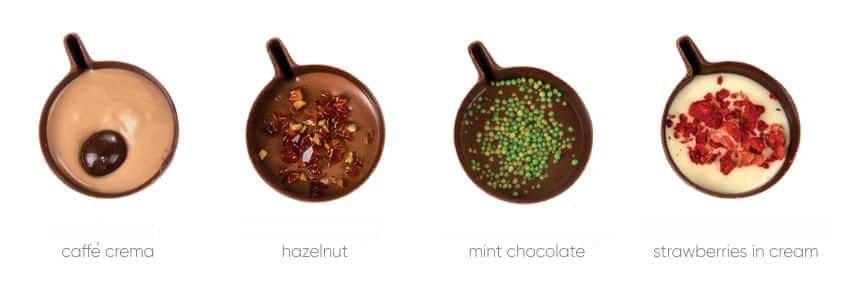 Príchute: jahody v smotane, mätová čokoláda, lieskový orech, kávový krém