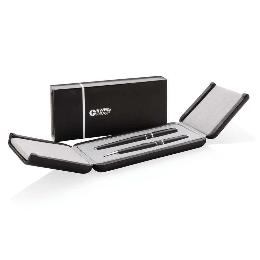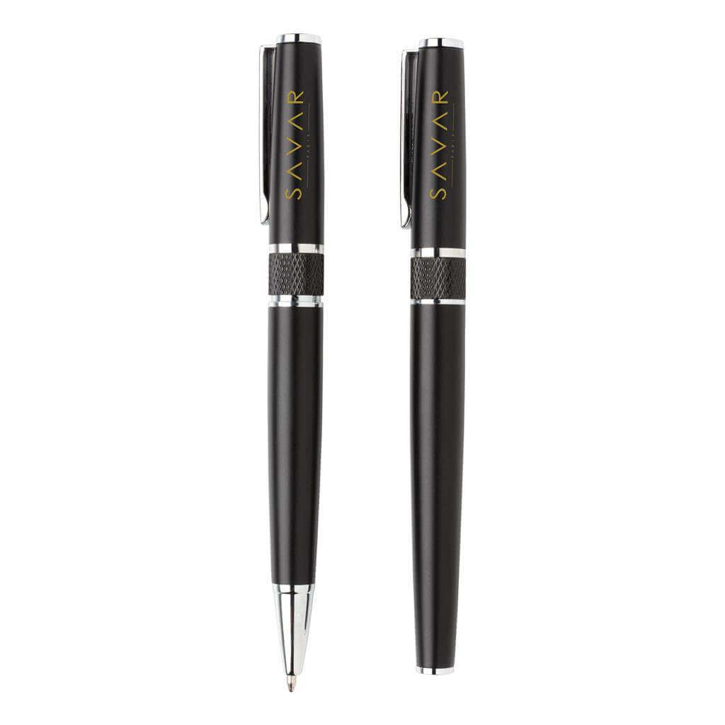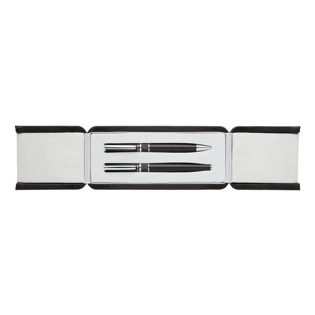 Luxusná sada sada pier v štýlovom prevedení. Sada obsahuje guľôčkové pero a roller, balené v elegantnej darčekovej krabičke s vyrazeným logom. Obe perá sú vybavené nemeckým modrým atramentom Dokumental pre extra príjemné písanie priemerne 1 200m textu.