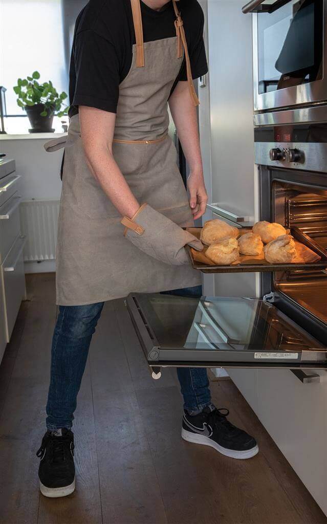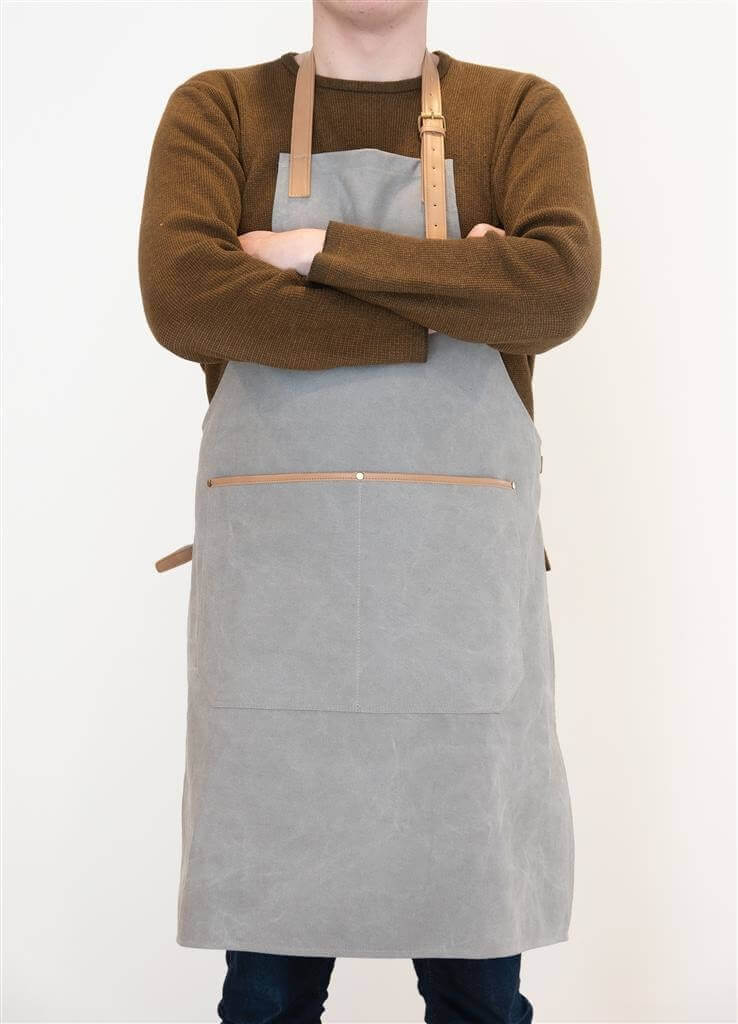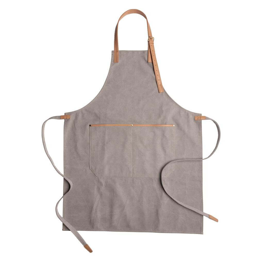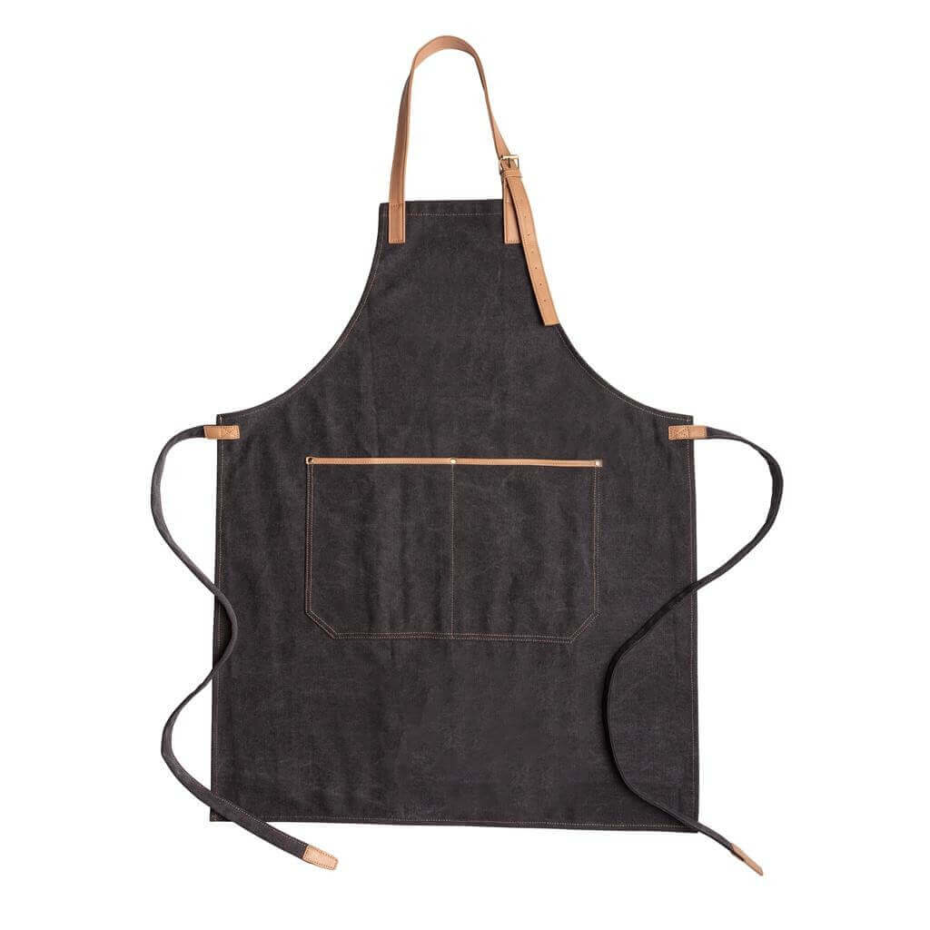Vysoko kvalitná zástera vyrobená z odolného 16oz canvas s detailmi z umelej kože (PU). Jedna veľkosť s prispôsobiteľnými popruhmi okolo krku a okolo pása. Predné priestorné vrecko. Balené v Kraftovej darčekovej krabičke. Perte na 30st. s podobnými farbami.