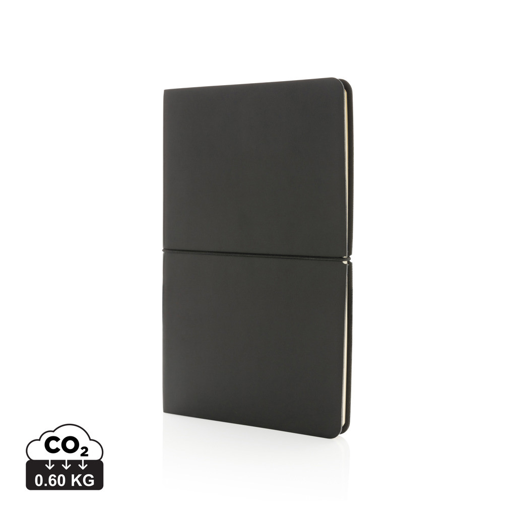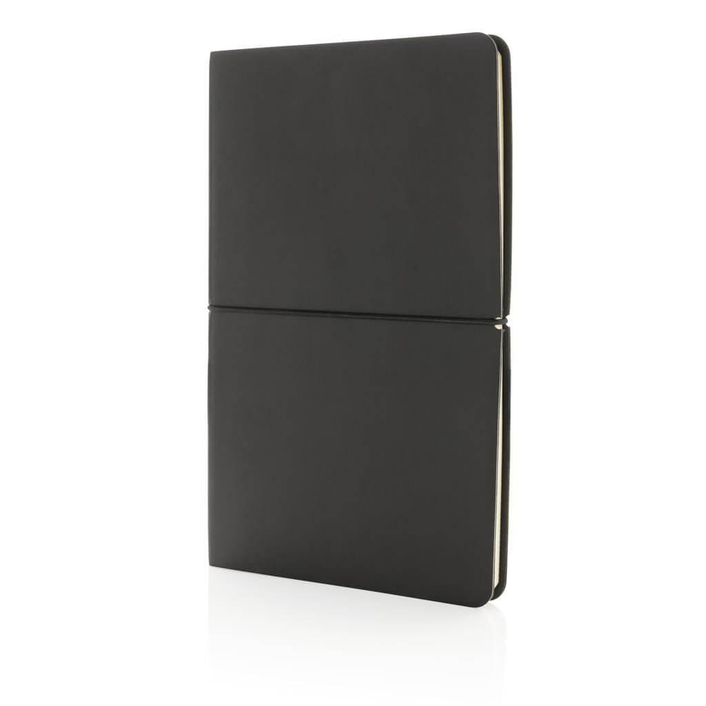Moderný poznámkový blok vo formáte A5 v luxusnom hladkom PU obale s jednoduchou vodorovnou elastickou gumičkou. Flexibilné mäkká väzba. Obsahuje 96 listov / 192 strán krémového linkovaného papiera o gramáži 90 g / m2.
