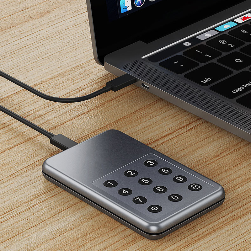 Ako záložné médium na ukladanie citlivých údajov alebo prenosné úložisko chránených informácií vám poslúži tento prenosný pevný disk s hardvérovým šifrovaním. Prístup k disku je chránený kódom PIN, ktorý zadáte na zabudovanej numerickej klávesnici. Šifrovanie sa vykonáva pomocou najmodernejších algoritmov, aby sa vaše údaje nedostali do nepovolaných rúk. Ak sa zistí viacnásobný opakovaný pokus o prelomenie šifrovania, firmvér disku začne automaticky ničiť údaje. Minimálny odber 50ks.