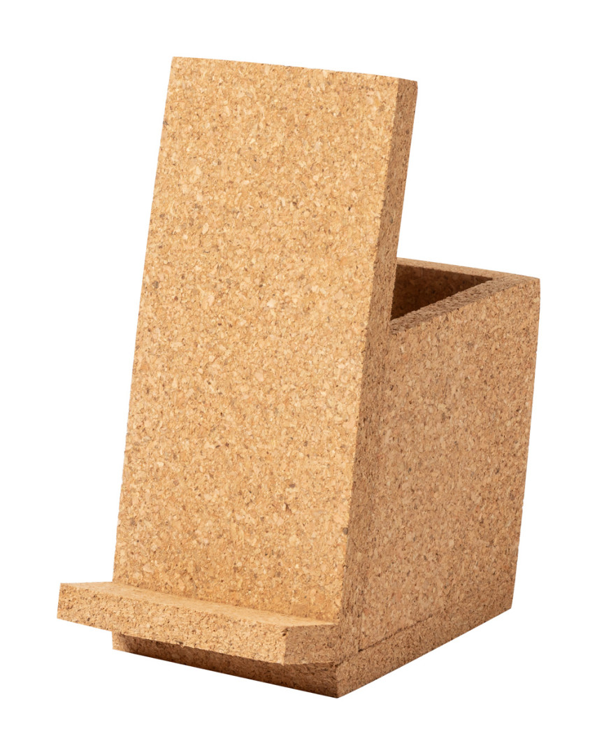 Stojan na pero z prírodného korku s funkciou držiaka na mobil.