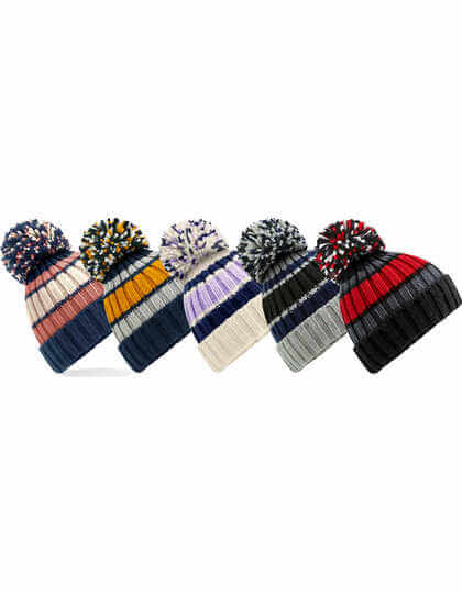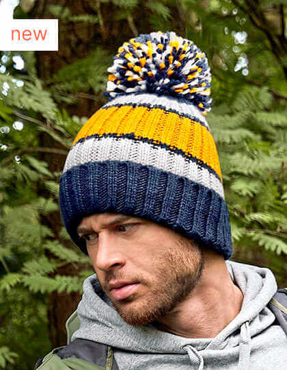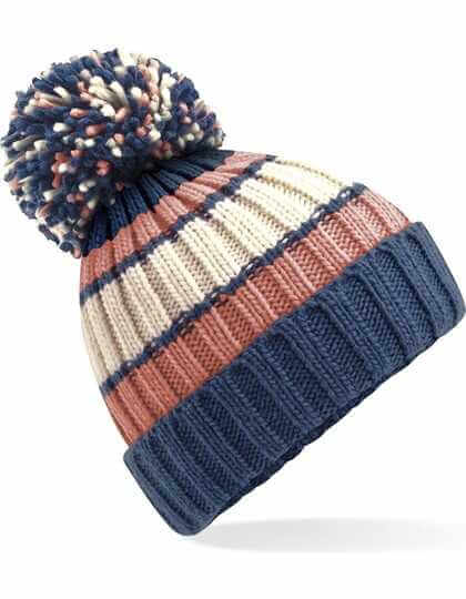 Podšívka zo 100% polyesterovej ovčej kože | 100% akryl Soft-Spun | Ťažký rebrovaný úplet | Výrazné trojfarebné pruhované prevedenie | Luxusný brmbolec nadmernej veľkosti | Luxusná zateplená podšívka z ovčej kože | Manžetový dizajn | odtrhávacia ceduľka
