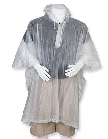 Ponco pláštenka z PVC | Zapínání výstrihu na patenty | Kapuce se zdrhovací šnurkou | Lze ji zcela rozepnout a položit naplocho jako podložku s dvojnásobnou plochou | Dodává se v prepravním pouzdru na patent s šnurovým držadlem | Pouzdro je na jedné strane opatreno znackou, druhá je volná pro dekoraci Kód farby: #000000 100% polyvinyl chlorid