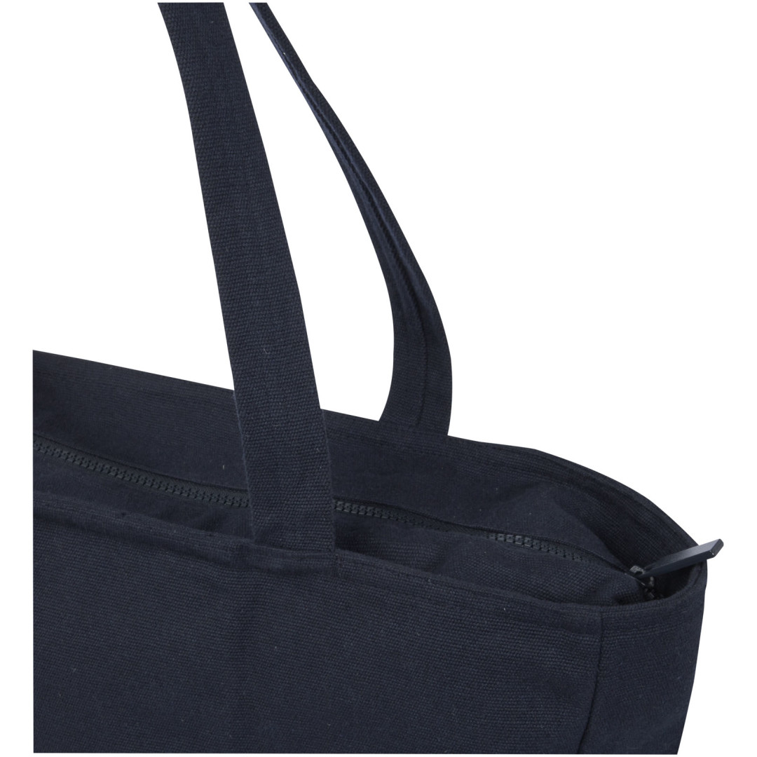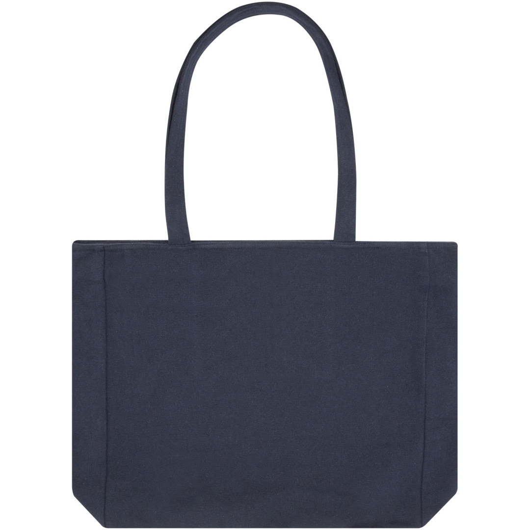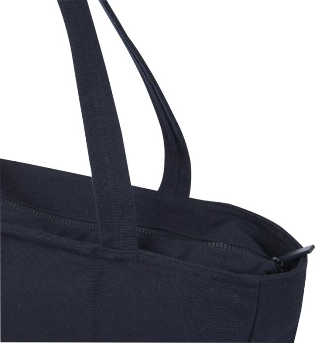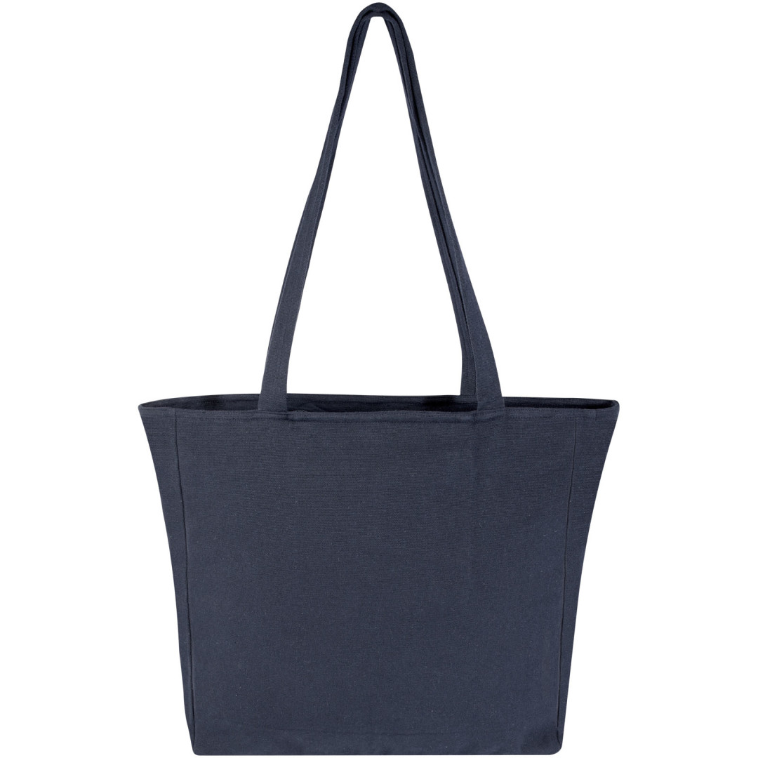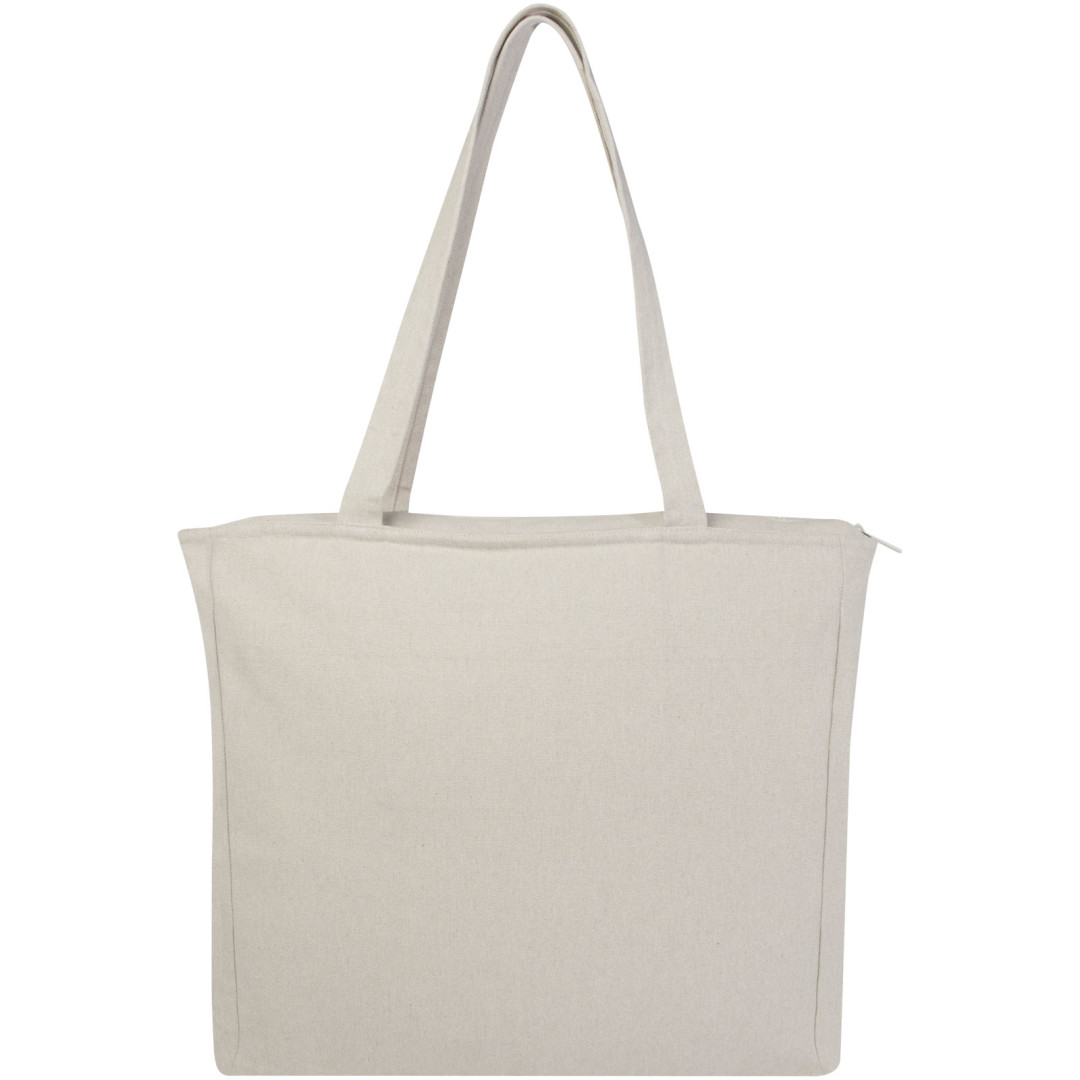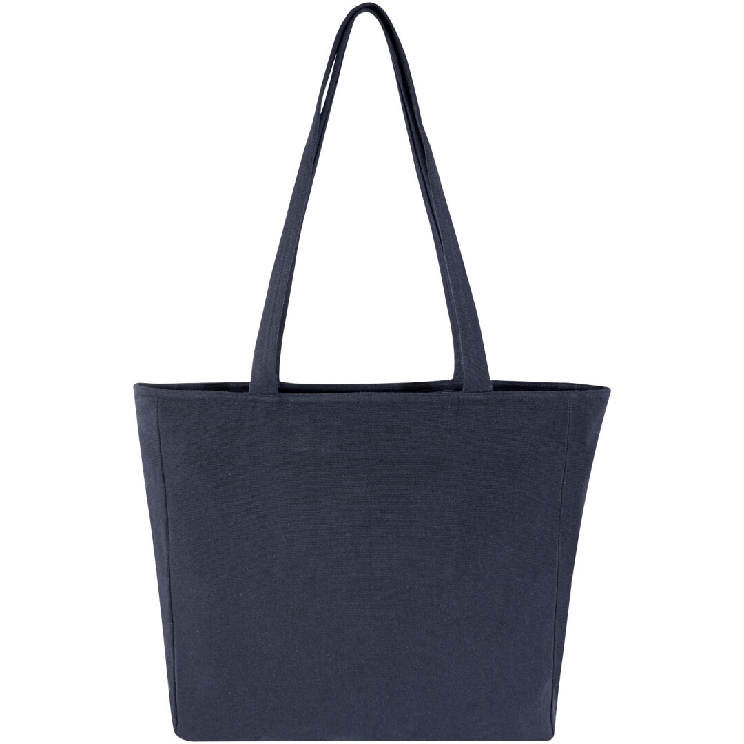 Recyklovaná nákupná taška Weekender so svojou veľkou kapacitou je ideálna na krátke výlety. Nákupná taška je vybavená zipsom po celej dĺžke, ktorý zaisťuje, že predmety zostanú vo vnútri chránené. V hlavnej priehradke sa tiež nachádza malé vrecko na zips pre menšie predmety. Nákupná taška obsahuje recyklované vlákna Cyclo®, pri ktorých sa používa vopred vytriedený odpad, ktorý určuje farbu priadze. Tieto vlákna nielenže znižujú dopyt po pôvodných zdrojoch, ale tiež prejavujú záväzok k cirkulárnemu životu, stelesňujú podstatu znižovania odpadu a podporujú systém s uzavretým reťazcom. Každá taška je dodávaná s indikátorom Aware™. Táto inovatívna funkcia umožňuje používateľom sledovať pôvod a cestu ich položky prostredníctvom QR kódu, čím zvyšuje transparentnosť v dodávateľskom reťazci a podporuje pevnejšie prepojenie medzi produktom a jeho výrobným procesom. 70% Recyklovaná bavlna, 30% Recyklovaný polyester, 500 g/m2.